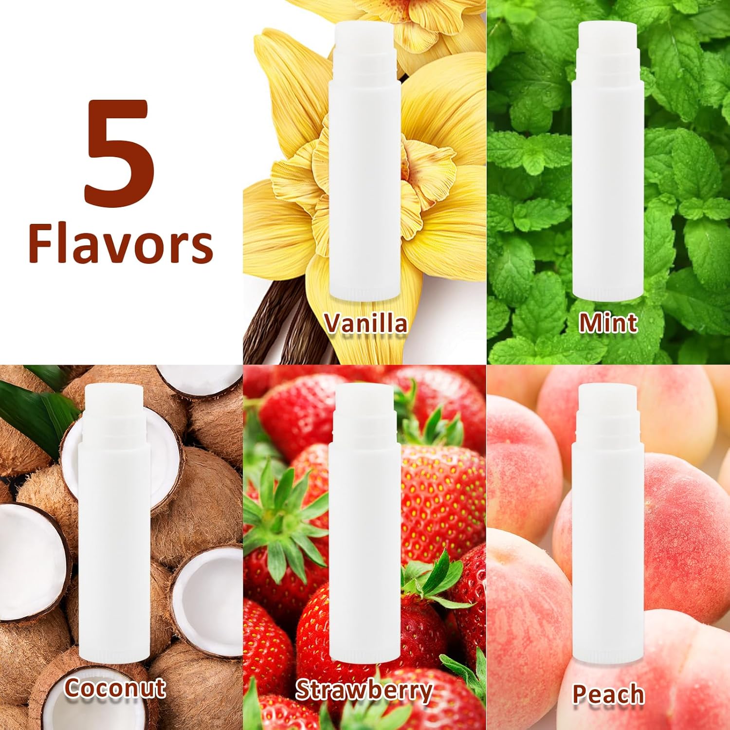 - ✅ 【5 Flavors Lip Balm】Our lip balm bulk contains 300 pack in 5 flavors -Peach, Mint, Strawberry, Coconut, and Vanilla. Labels are built into the box to help distinguish flavors