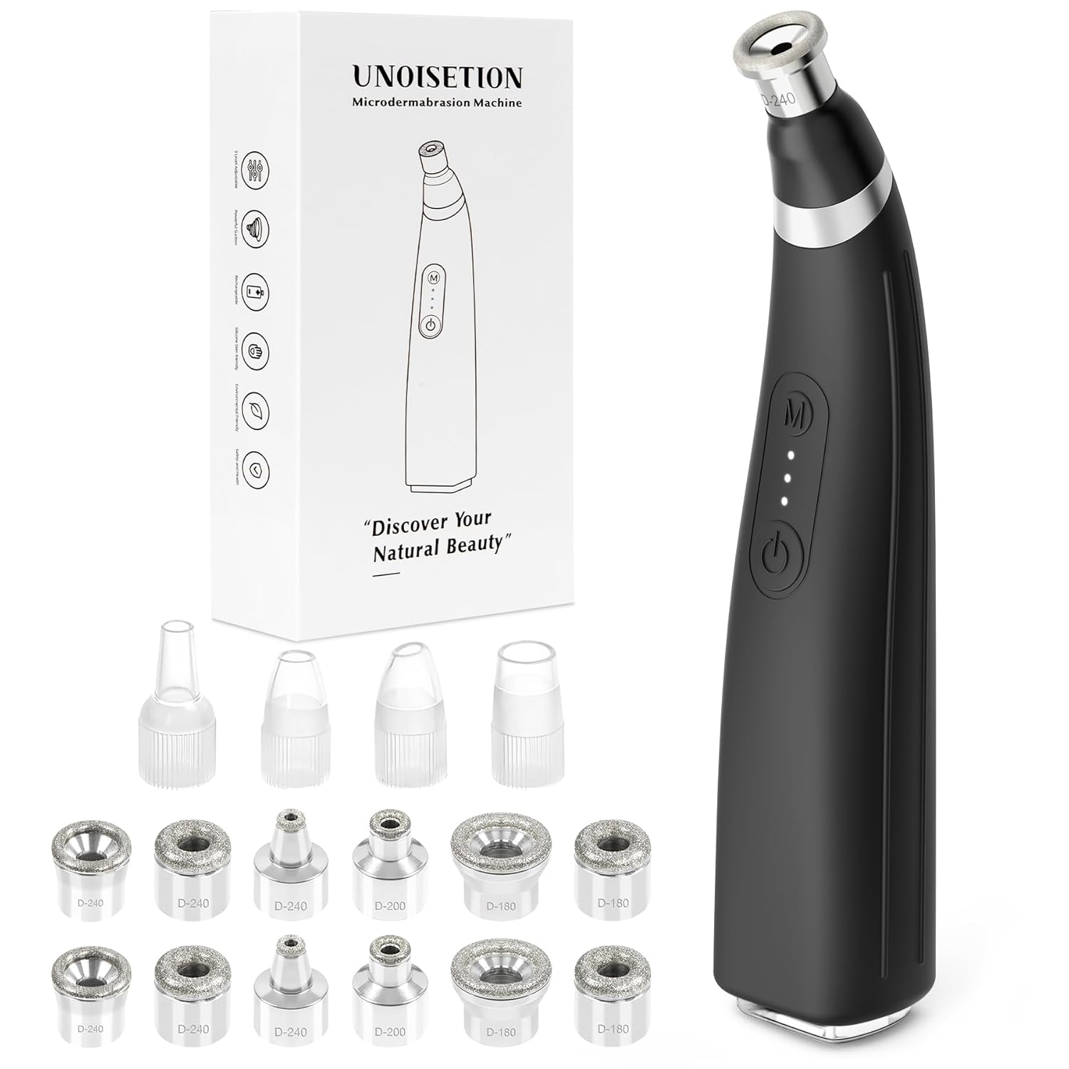 Diamond Microdermabrasion Machine, UNOISETION Rechargeable Micro Dermabrasion Facial Tool with 12 Diamond Tips, Blackhead Remover for Home Travel