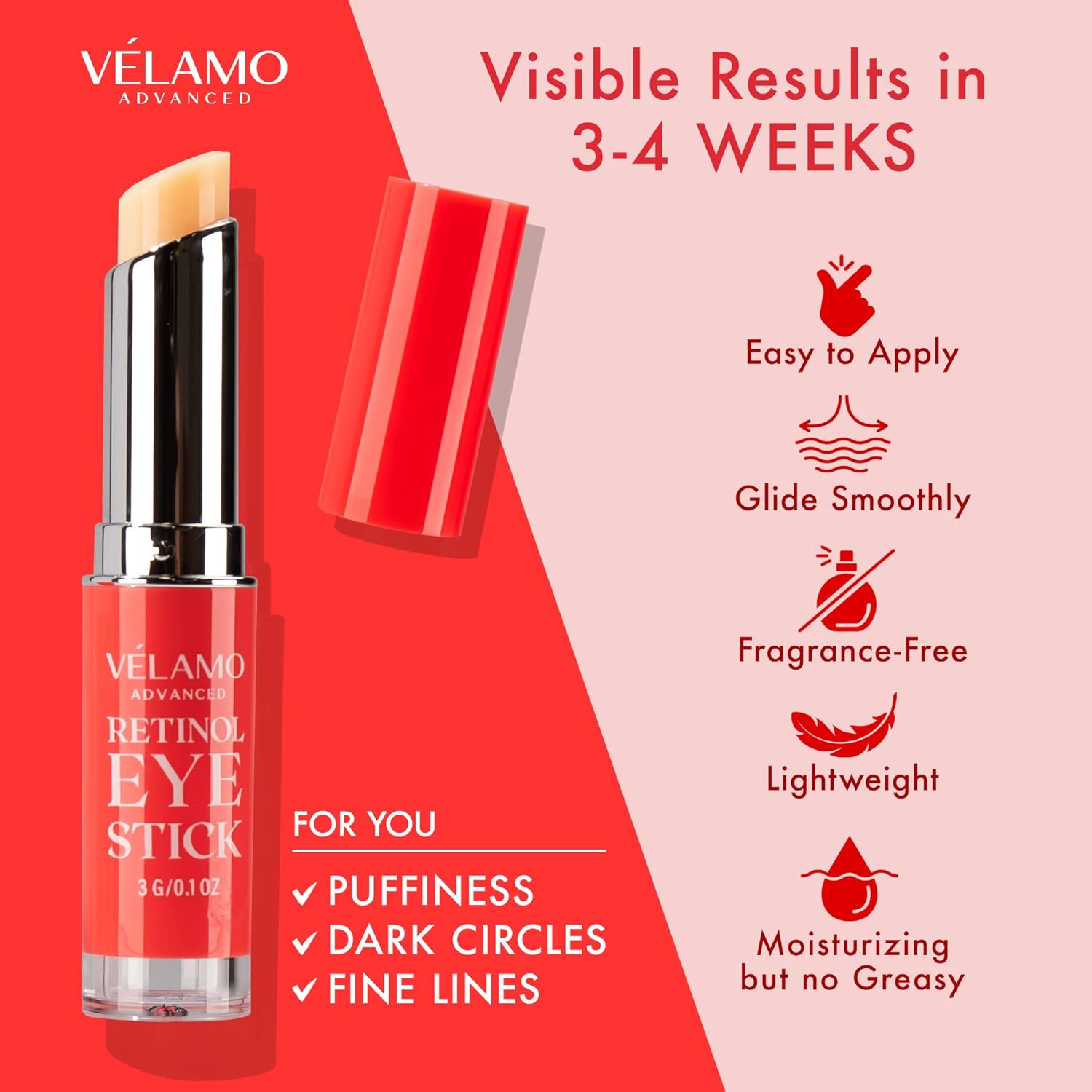 - 🌟The Retinol Eye Cream for Dark Circles and Puffiness - VELAMO ADVANCED retinol eye stick is s a complete multi-treatment balm for younger-looking and well-rested eyes. Our retinol eye stick works like a charm as under eye cream anti aging solution. This power-packed and do-it-all balm visibly boosts bounce and moisture levels. Most importantly, it is safe for sensitive skin.
