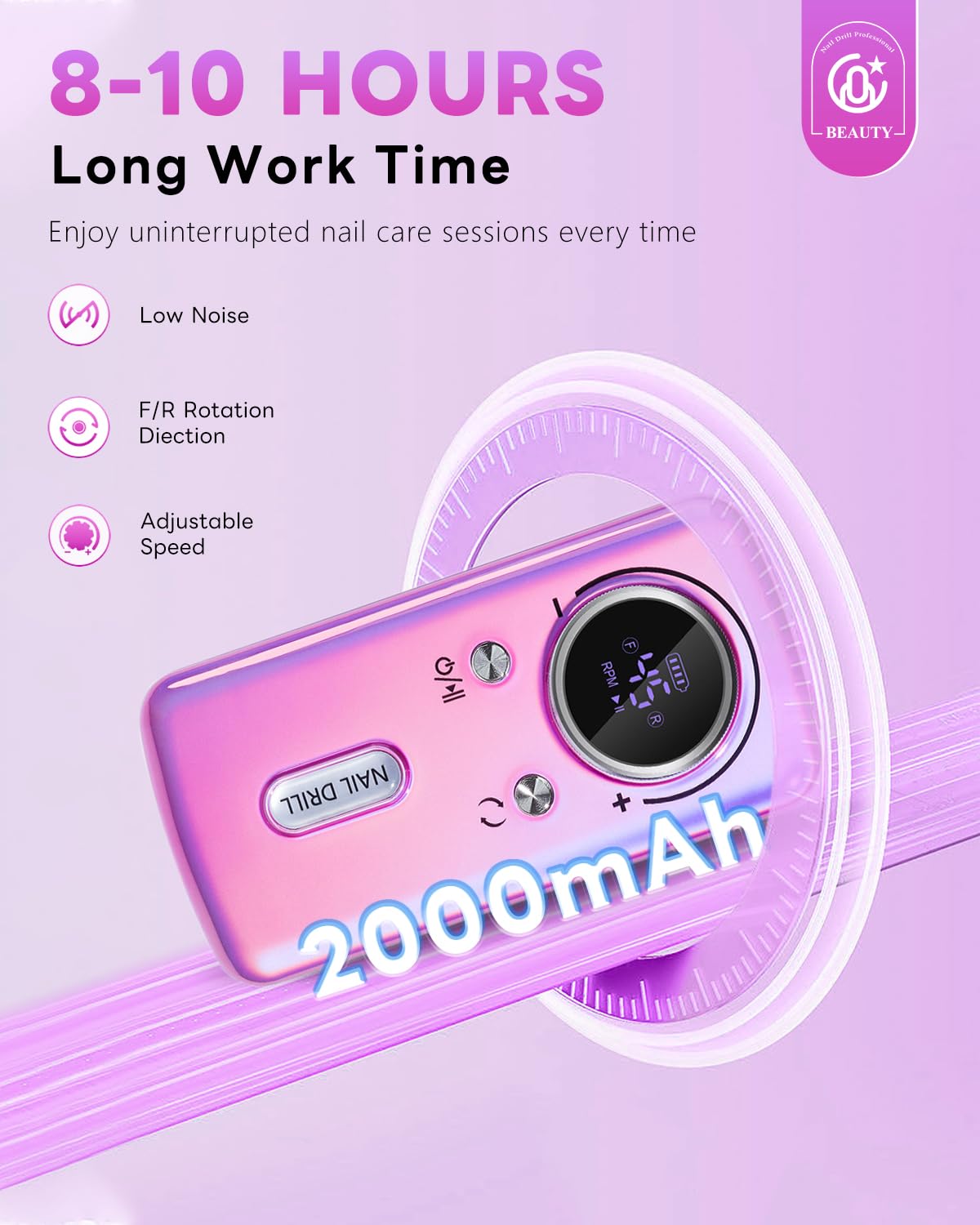 • 【8-10 Hours Long Work Time】Enjoy uninterrupted nail care sessions with our rechargeable nail drill, offering an impressive 8-10 hours of continuous operation on a single charge. Ideal for busy salon environments or long at-home nail treatments, ensuring consistent, reliable performance every time.