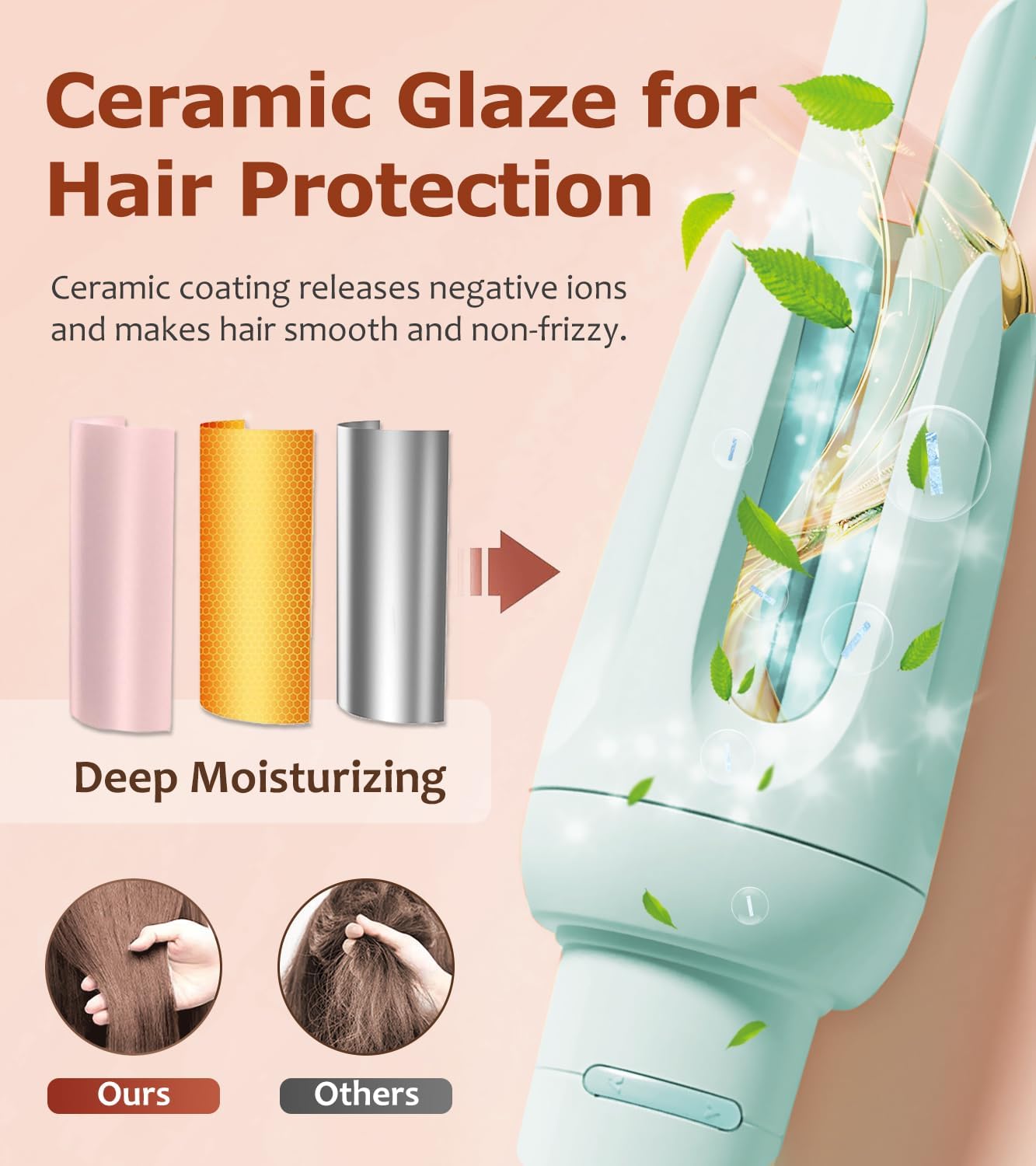 - Ideal Thing to Protect Your Hair: This automatic curling iron is made of ceramic glaze that releases lots of negative ions to lock in moisture and prevent heat damage. It can eliminate static electricity, smooth frizz, and make hair soft and shiny. The package includes a comb and two hair clips, making it even easier to style your hair. Whether it's for friends or loved ones, this curling iron set is an ideal thing choice