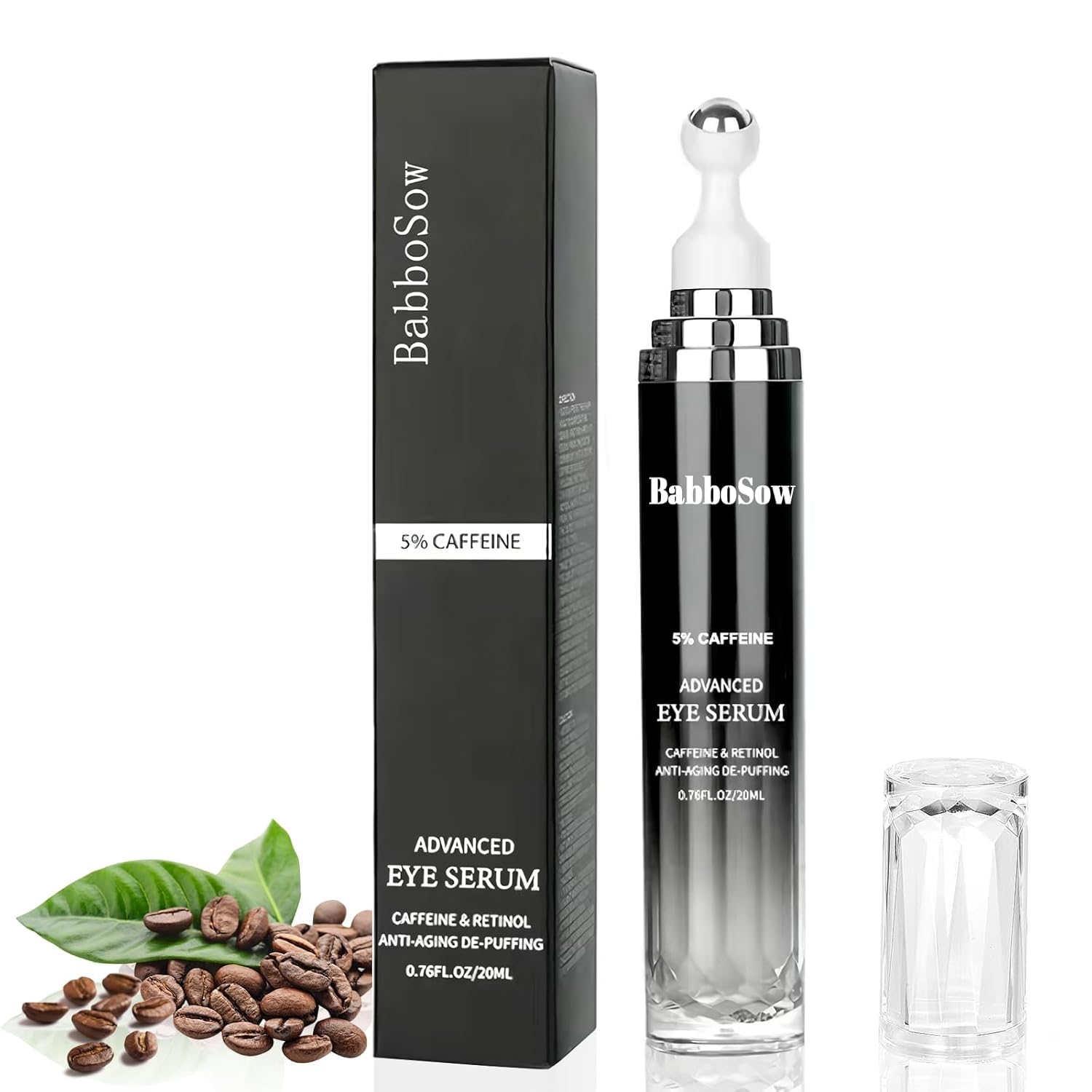 Caffeine Eye Cream and 24K Gold Eye Mask (20 pcs): Under Eye Serum for Dark Circles and Puffiness Eye Care Eye Serum Anti Aging with 360° Massage Ball Reduce Eye Bags, Wrinkles and Fine Lines