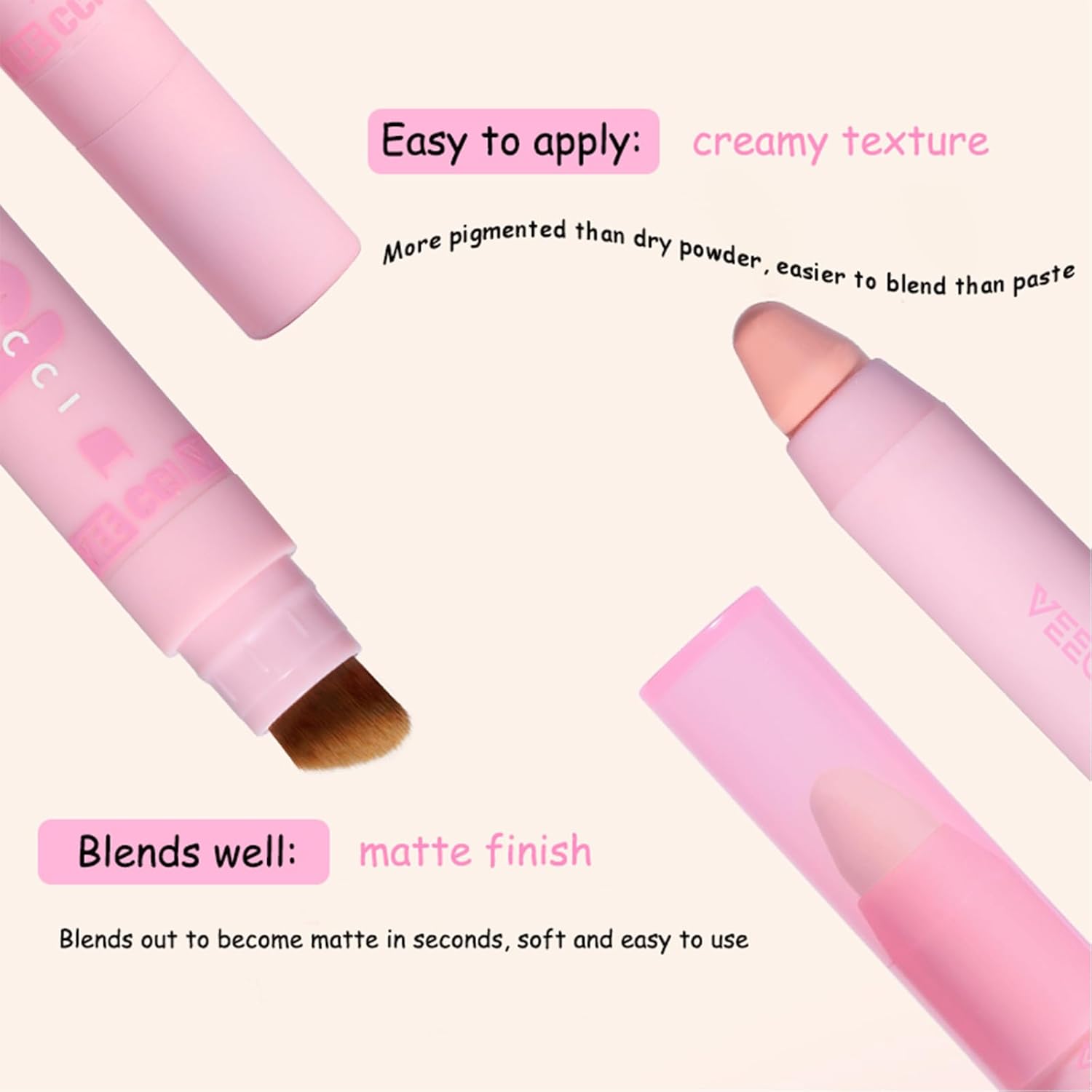 Blush Stick - Precise Makeup Stick with Brush, Moisturizing, Long-lasting Buildable Color for Easy Sculpting, Highly Pigmented Matte Finish, Ideal for Foundation & Concealer