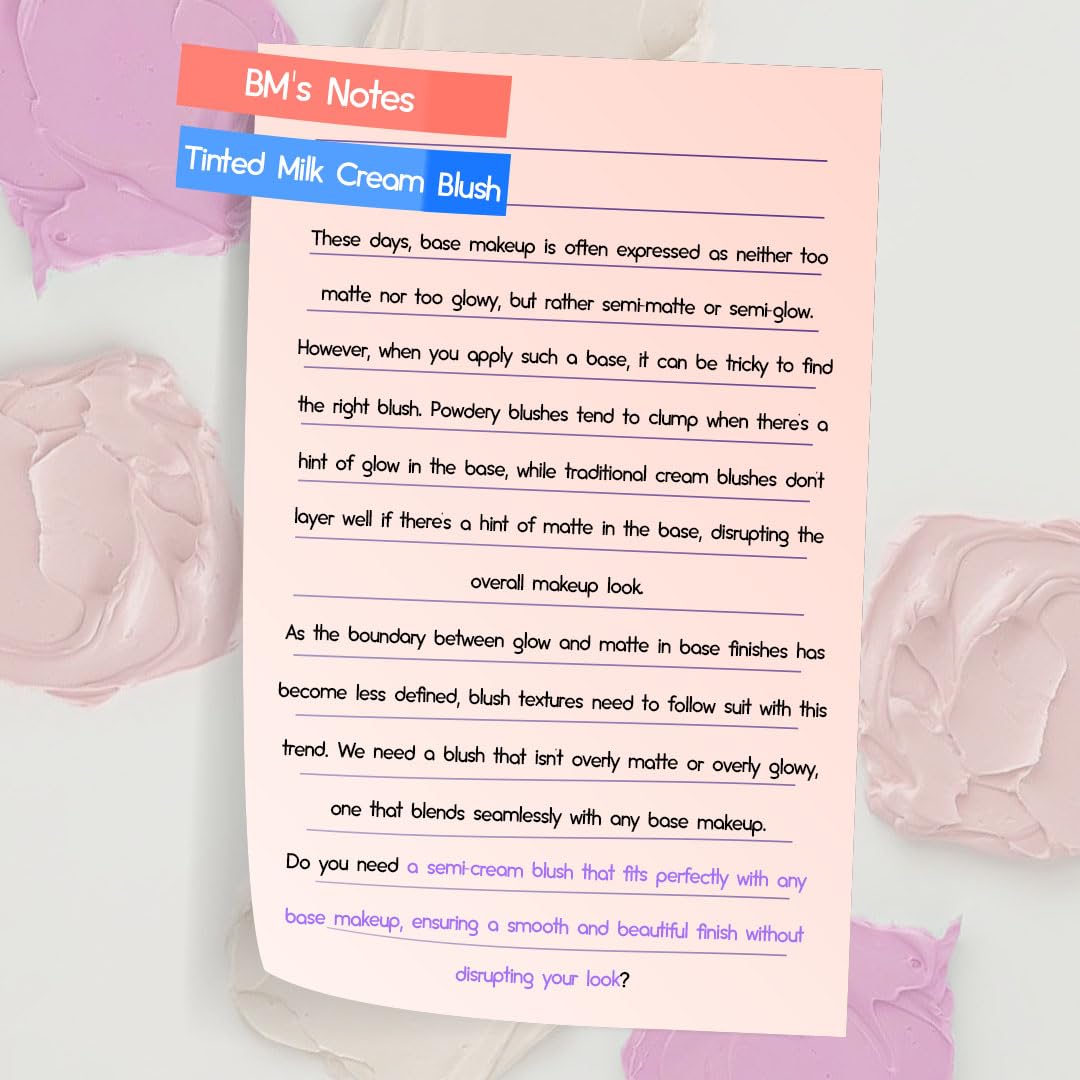HOLIKA HOLIKA Colored Milk Cream Blush 04 LOVE YA: Glowing, Natural Makeup, Glossy Finish, Soft, Creamy Dough like texture, Shimmer, Radiant, Plumping, Cheek, Lightweight, Clean, Buildable