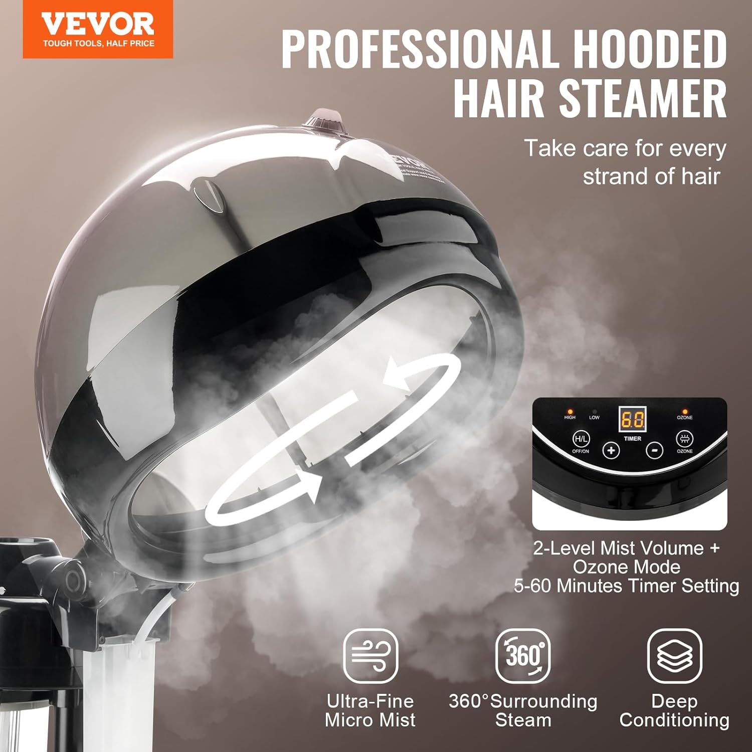 - Deep Conditioning, Lasting Shine: Experience rapid hair hydration with VEVOR professional hair steamer, releasing fine micro-mist that enhances water and nutrient absorption in every strands. Infused with high-concentration negative ions, our ionic hair steamer continuously emits negative ions to reduce frizz, static, and split ends.