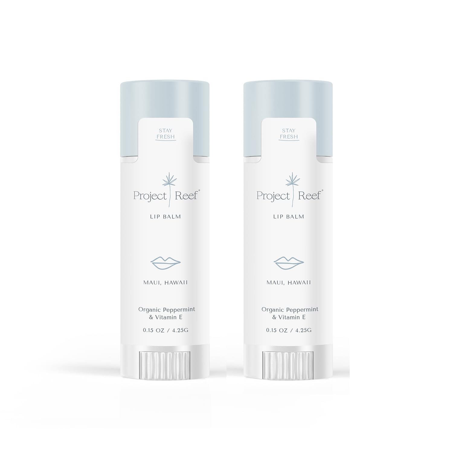 Cooling Lip Balm w/Organic Peppermint, Shea Butter, Vitamin E, Hydrating Chapstick, Soothe Dry Sunburnt Lips, After Sun Care, 2 Pack