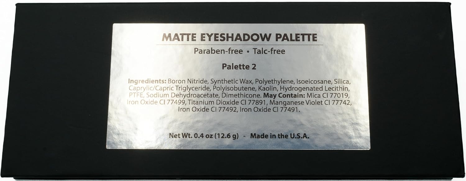 Matte Black, Silver Grey, Light Brown and Off White Vegan Eyeshadow Mini Palette; Talc, Paraben & Cruelty Free