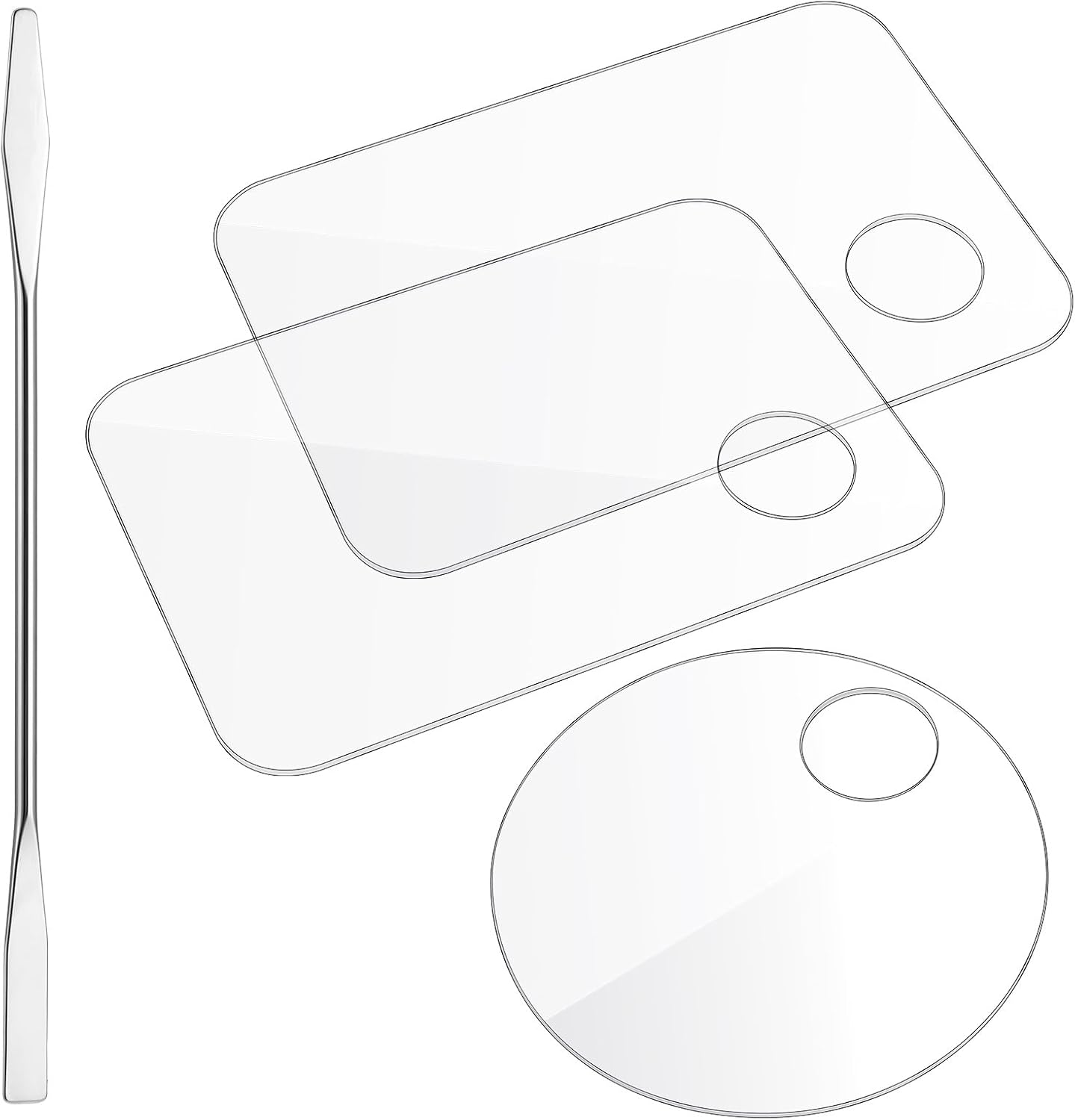 - Easy to Portable: This makeup palette sets three acrylic makeup palettes and three stainless steel spatulas, making it perfect for on-the-go makeup application. The compact and lightweight design allows you to easily carry them in your bag, making touch-ups effortless anytime, anywhere.