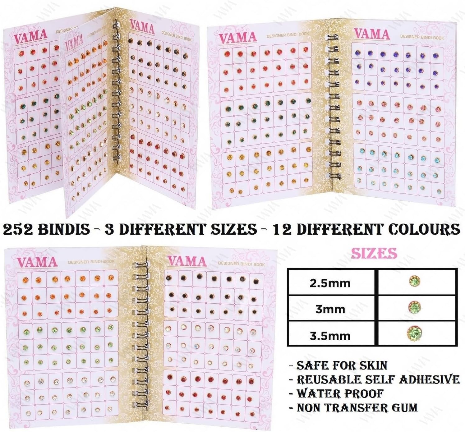 VAMA Multicolour Small Stone Indian Bindis Kumkum Forehead Sticker Bindiya Bindi Booklet for Girls & Women - 252 Diamond Sticker Bindis Book