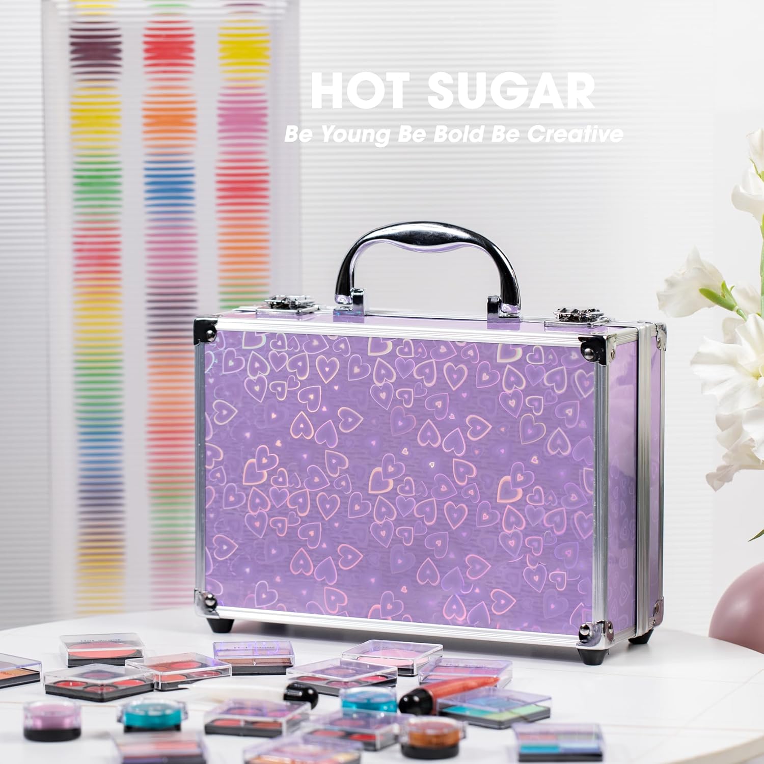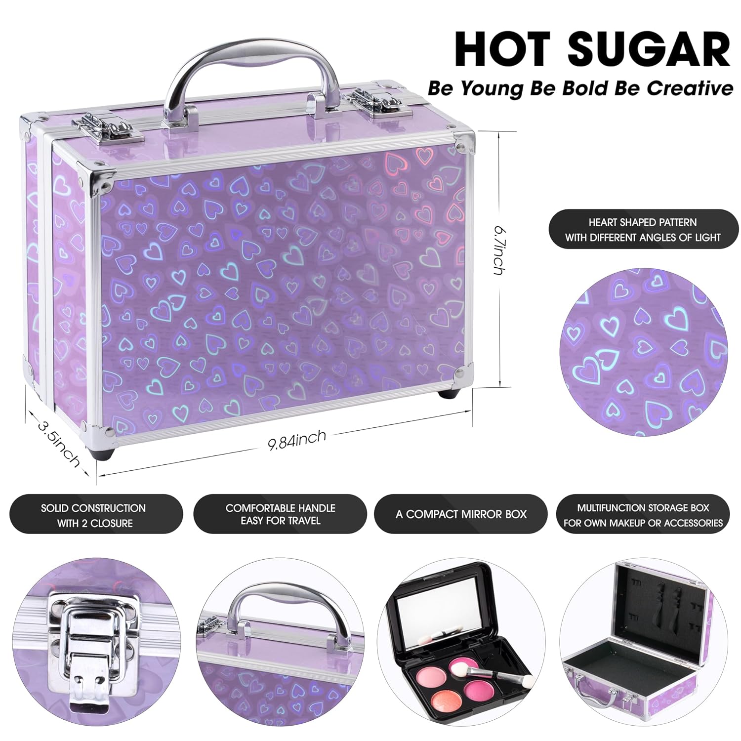 Hot Sugar Makeup Kit for Teenager Girls - Full Starter Cosmetics Set with Eye Shadow Lip Balm Blush Lip Gloss Brush Lip Pencil Eye Pencil and Mirror (Purple Love)
