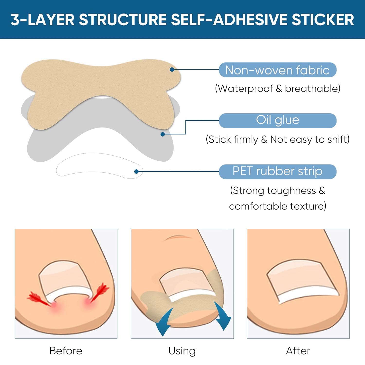 - 【Soft & Breathable】The toenail corrector strips are made of high quality non-woven fabric, which is breathable, soft & comfortable & also has strong elasticity. You don't need to worry about breakage & stuffy feet during use.