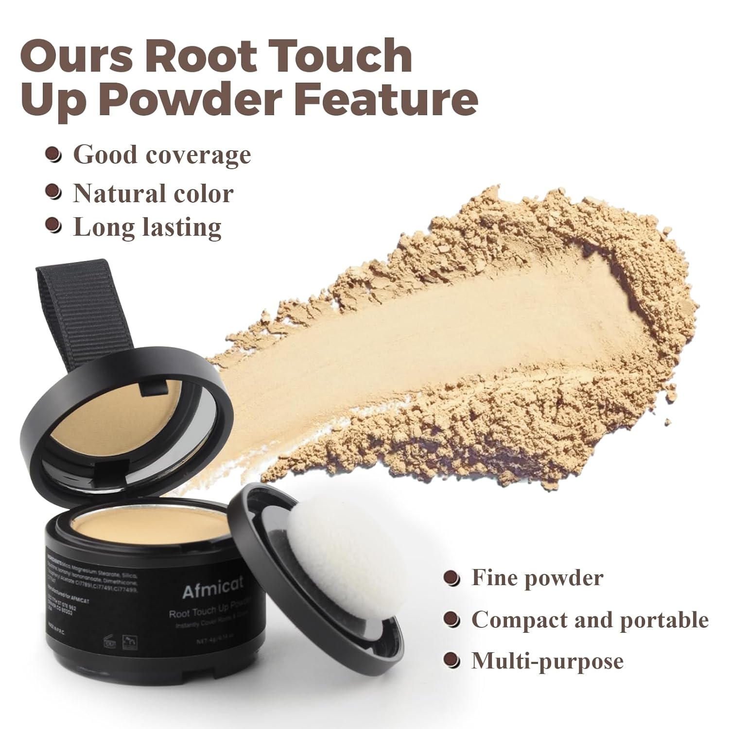 - ROOT COVER UP POWDER: This root touch up powder seamlessly blends with your natural hair color, creating a natural-looking finish that covers roots, bald spots, and thinning hair areas.Say goodbye to thinning hair root regrowth and hairline blemishes with our root cover up powder.
