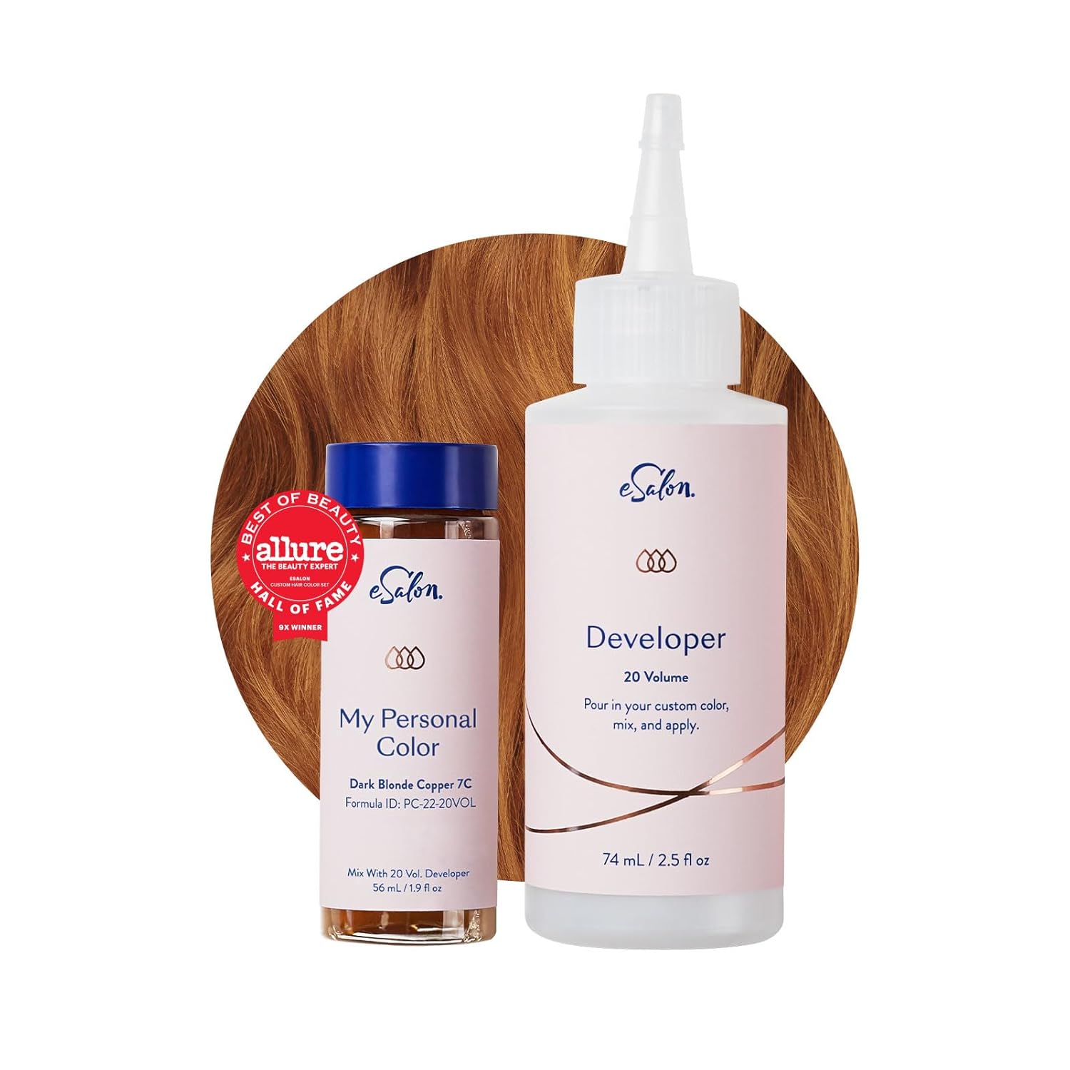 eSalon Permanent Hair Color & Hair Dye Complete Kit - Personal Colorist Kit for Up To 100% Gray Coverage for All Hair Types - Professional-Grade Ammonia-Free Hair Dye (Dark Blonde Copper 7C)