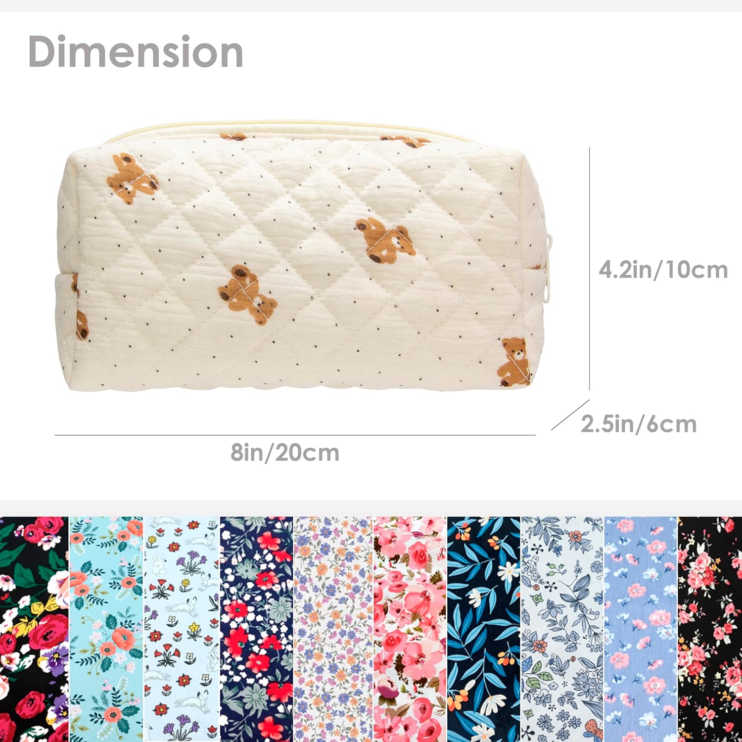 PAZIMIIK Vintage Quilted Makeup Bag Cosmetic Pouch for Brushes Pencils and Travel Make Up Accessories for Women and Girls Bear Beige