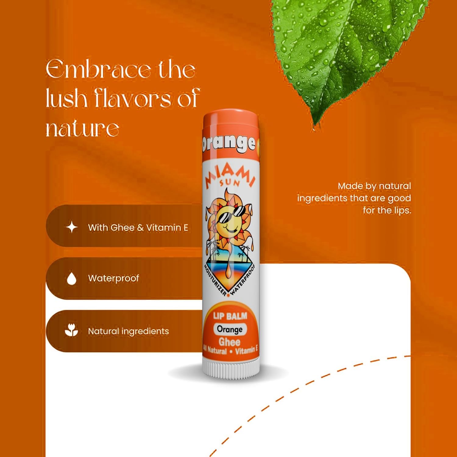 Miami Sun Natural Ghee Lip Balm, Hydrating Lip Treatment with Shea Butter & Beeswax, Organic & Non-Toxic, Best for Dry, Chapped Lips - Moisturizing, Healing, Chemical-Free Lip Repair (1 Count, Orange)