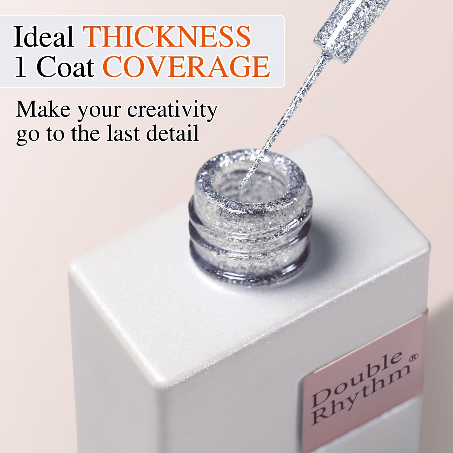 Double Rhythm 15 Ml Metallic Gel Liner Nail Art Bronze Mirror Chrome Painted Drawing Stripper 3D Effect Gel Polish (Glitter Silver-L1001)