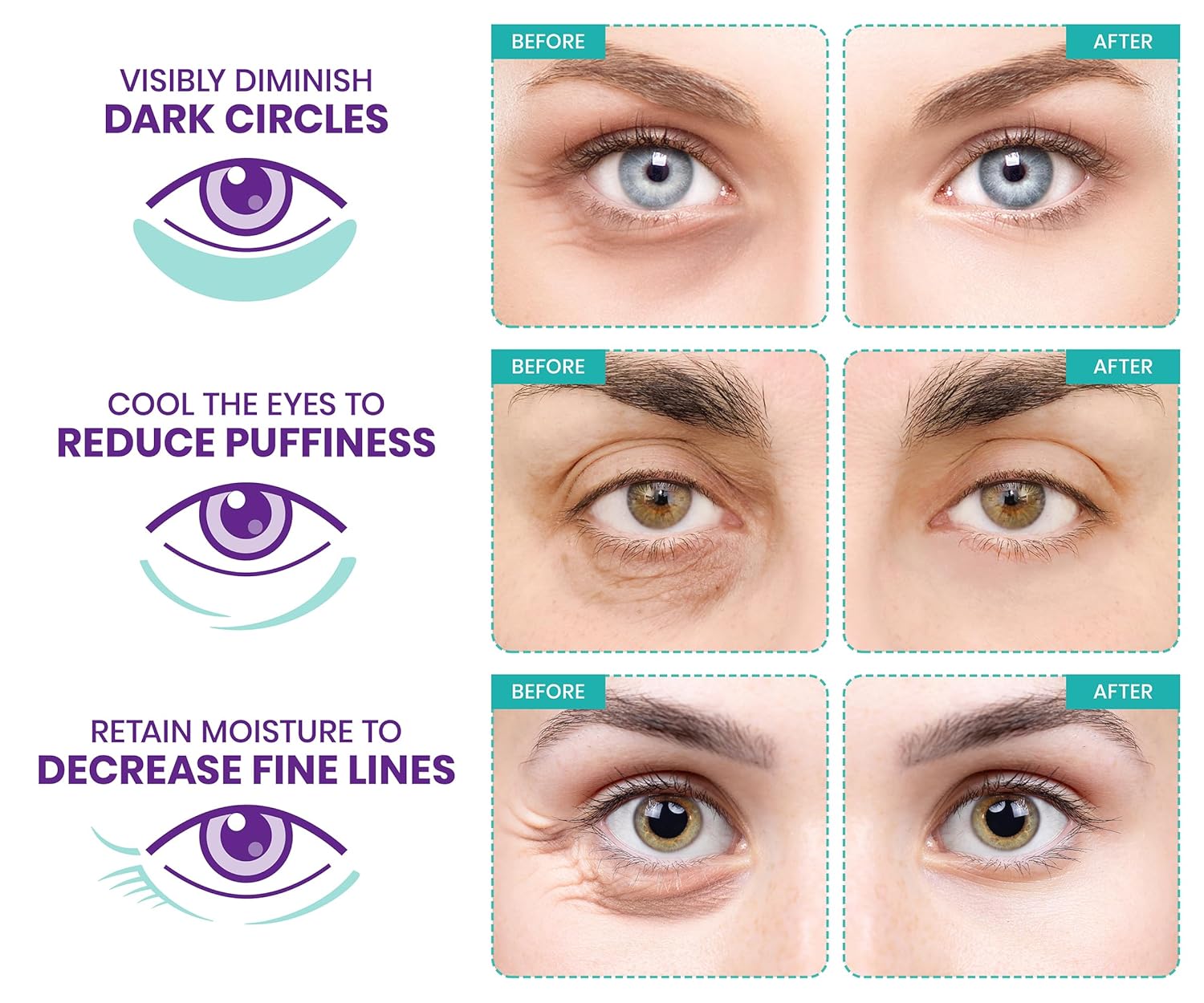 - SAY GOODBYE TO DARK CIRCLES & PUFFINESS - Tired of looking exhausted? Our eye patches for puffy eyes and dark circles are designed to refresh, hydrate, and improve the appearance of under-eye bags and puffiness. These collagen eye patches for women help promote a brighter, well-rested look.