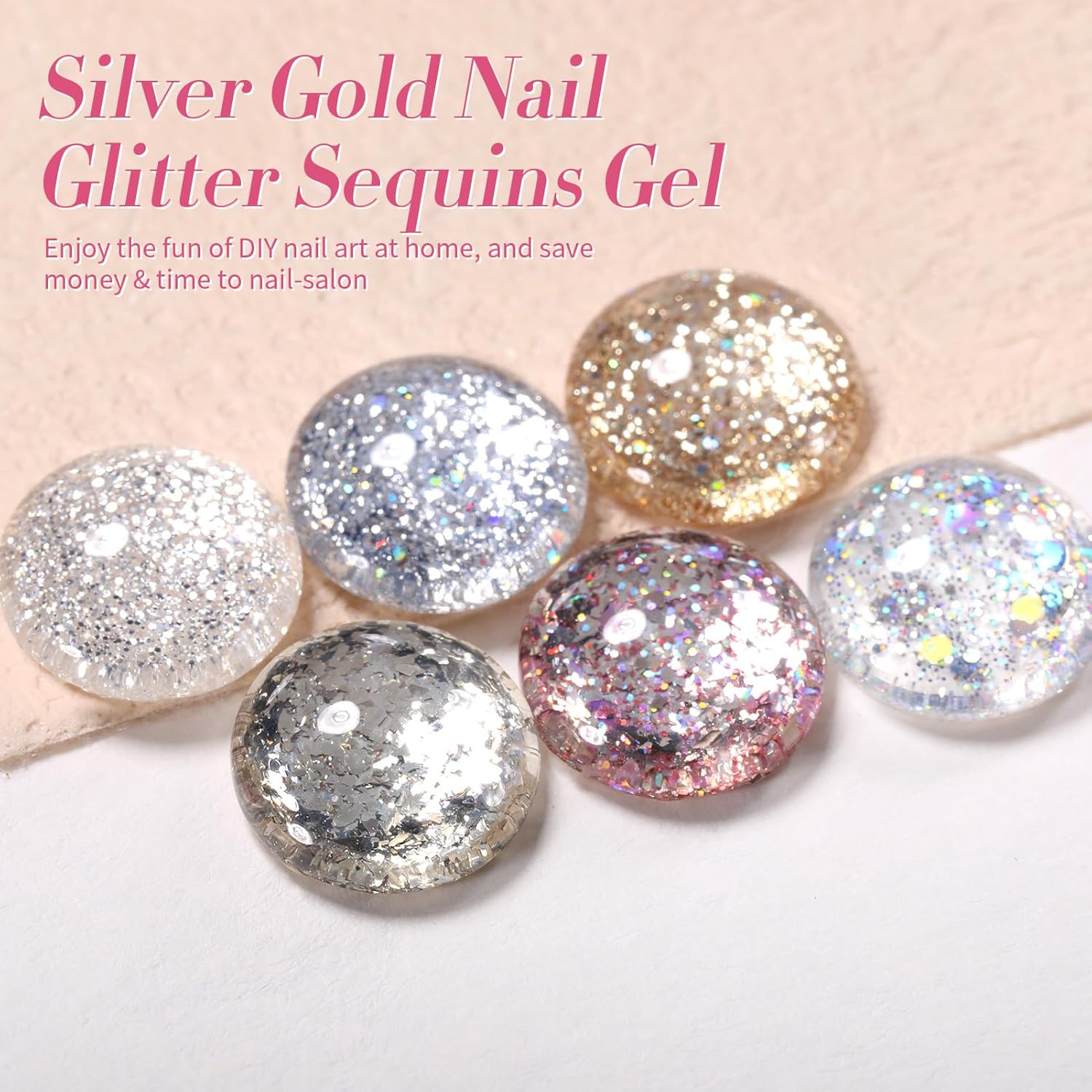 - PACKAGE CONTENTS:6 Bottles 7ml glitter gel polish.This super pigmented set with heavy glitter gel is a must have for every nail tech and DIY user!A full set of sparkly glitters to mix and match for any energetic spirit! Get your beauty manicure set on with the Shiny nail polish gel.