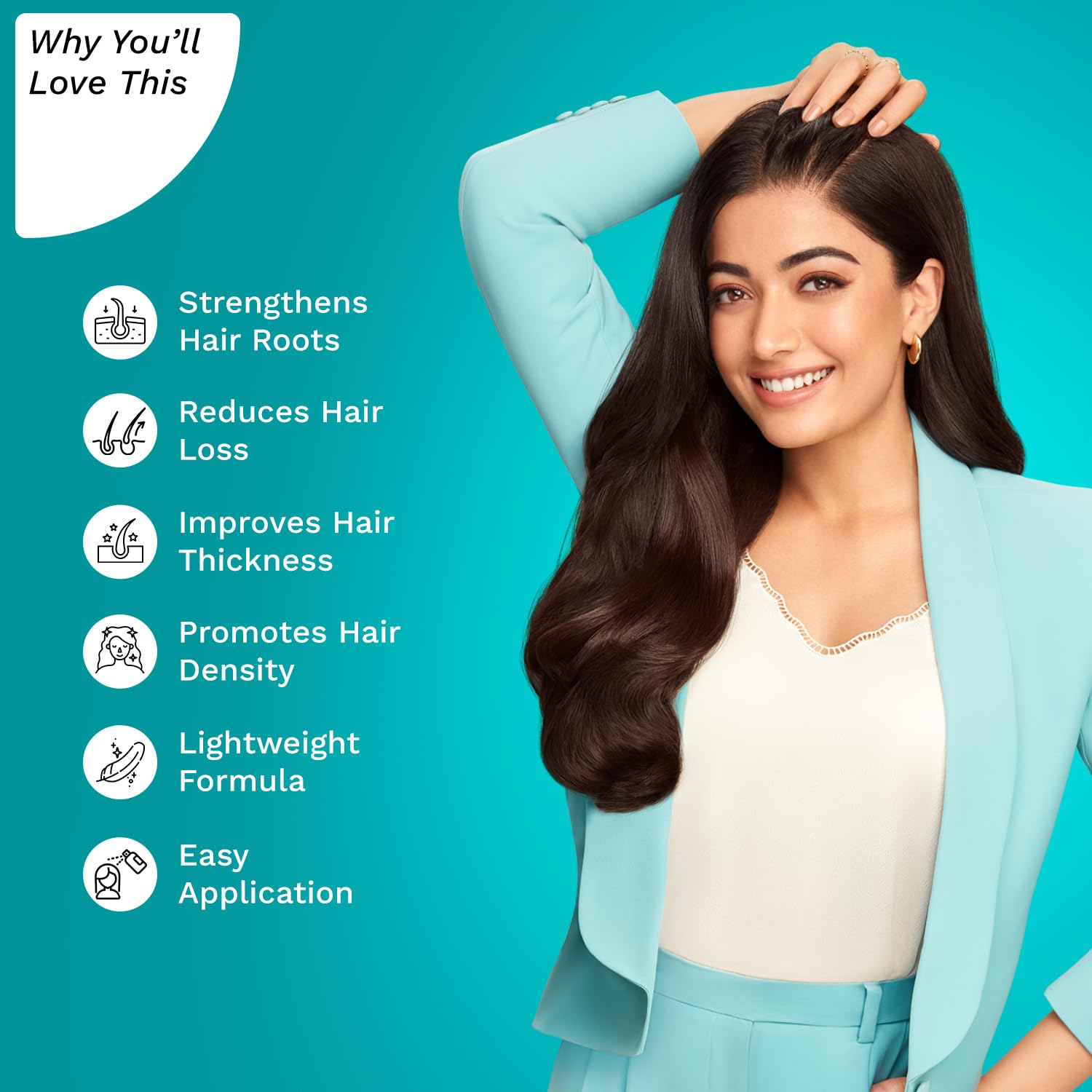 - Rosemary-Infused Spray to Reduce Hairfall – This lightweight spray blends Spanish Rosemary, RootActive & Biotin to strengthen hair from root to tip, reducing breakage and visible hairfall.