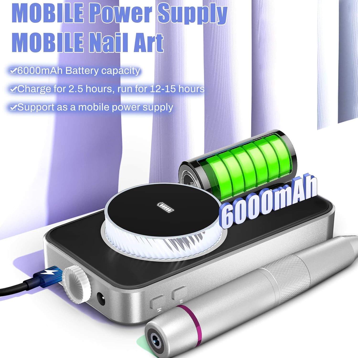 - 【Rechargeable and LED display】The professional nail drill machine is built-in 6000mAh large capacity battery can be fully charged in only 2.5 hours, and can provide 10-15 hours for grinding or polishing. The equipped high-definition LED display can display the speed and power, making it more convenient for you to polish nails.