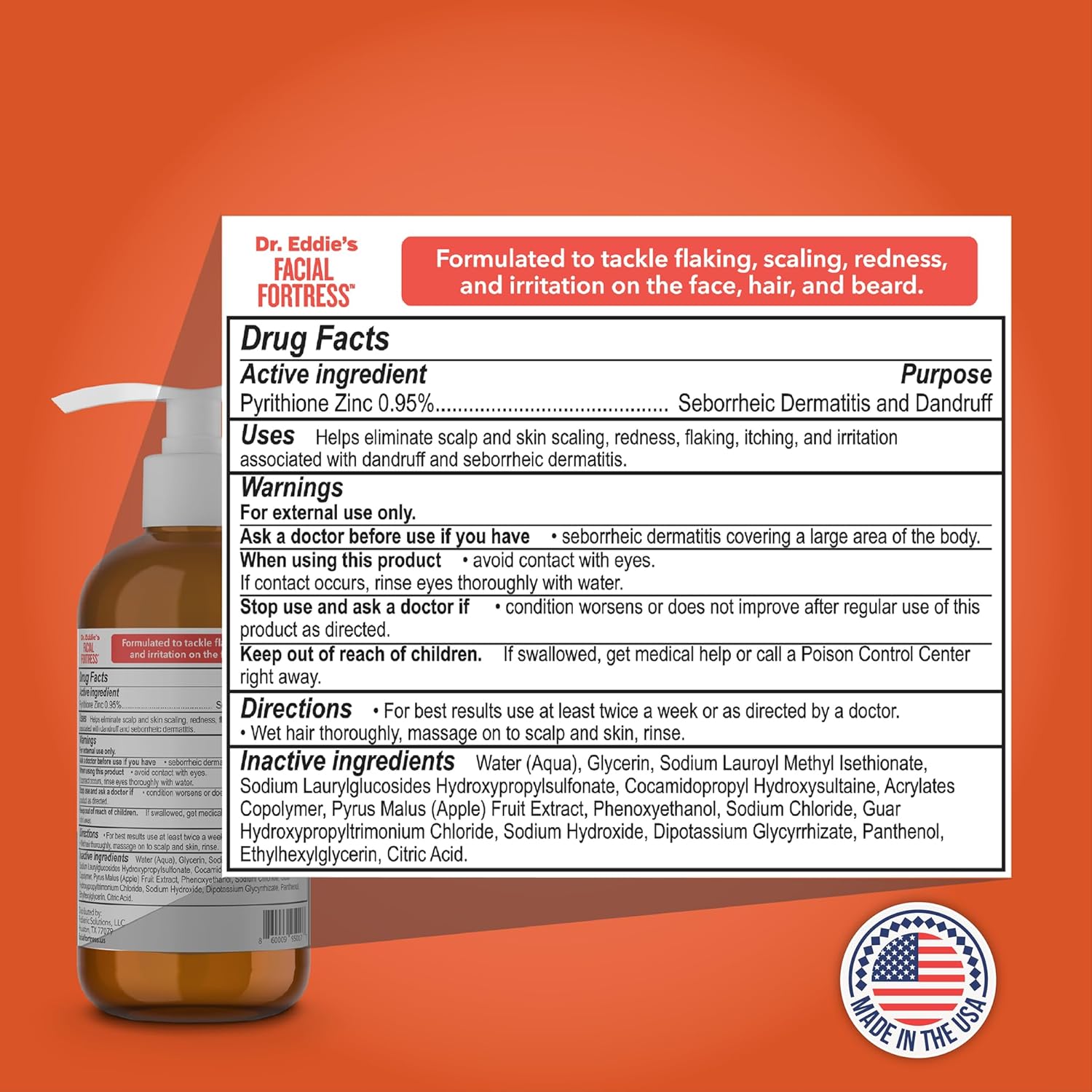 Dr. Eddie's Facial Fortress 3 in 1 Face, Hair, & Beard Wash - Beard Dandruff Shampoo for Men, Beard Cleanser, Face Wash, Beard Care, Face Soap with Pyrithione Zinc - 8 Fl Oz (Pack of 1)
