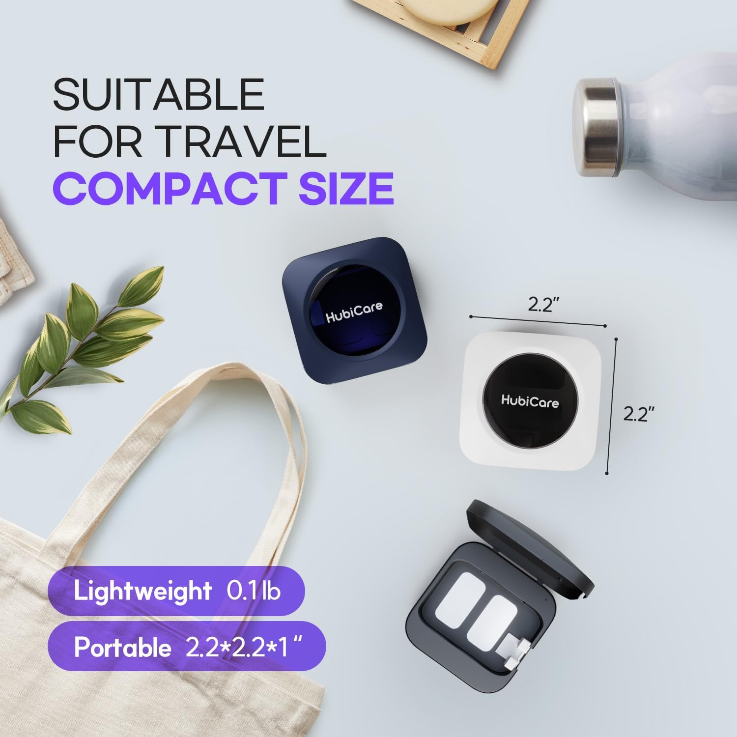 - ✅【Portable or holder type】HubiCare toothbrush Cleaner has a compact design and is highly portable. It is very light and small, weighing only 45 grams, making it perfect for carrying around in your bag. It is convenient to use at home, travel, or in the office. There is a magnet on the back of the product. It can be attached to the wall and used as a toothbrush holder. A magnetic attachment for wall attachment is included.