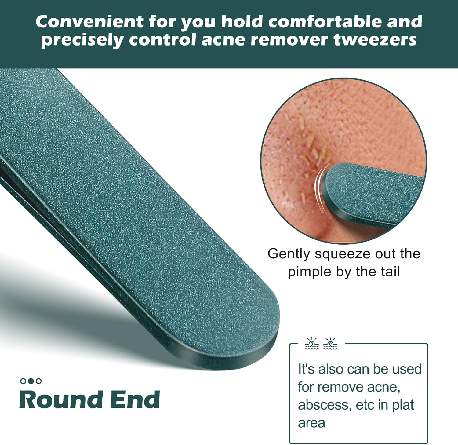 - Blackhead Tweezers with Oblique Tweezers: effectively removing blackheads, pimples, and other blemishes on chin, forehead flat area.
