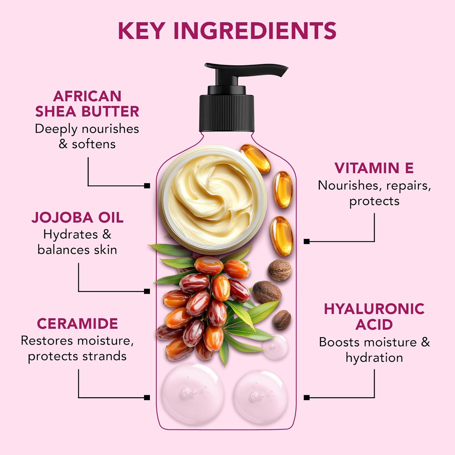 - Deeply Moisturizes & Revitalizes Hair β Enriched with African Shea Butter and Jojoba Oil, this shampoo nourishes the scalp, prevents dryness, and strengthens hair from root to tip.