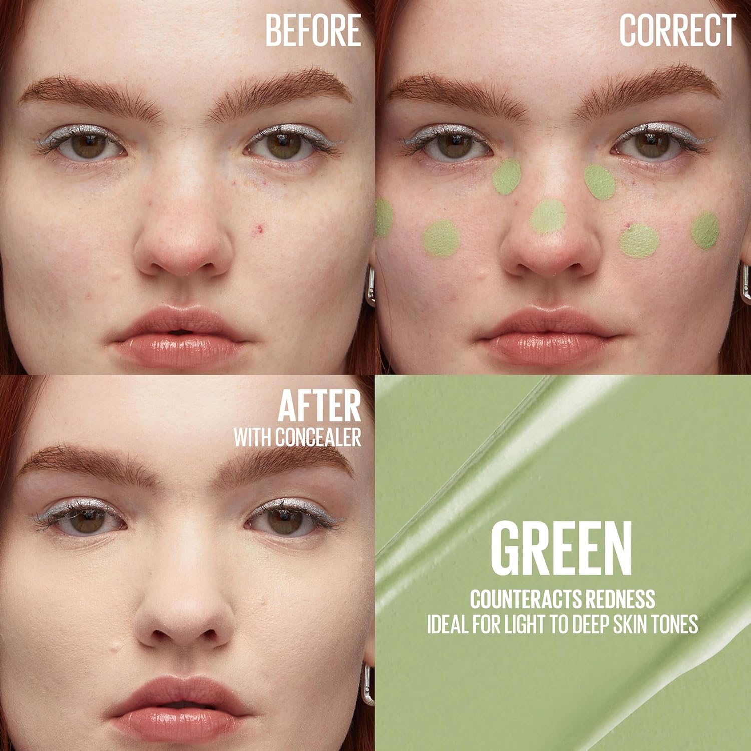 - 4 Color Correcting Shades: Pink corrects acts as a color corrector for dark circles & spots on light to medium skin tones, orange counteracts discoloration on medium to deep skin tones, yellow neutralizes dullness & green concealer counteracts redness