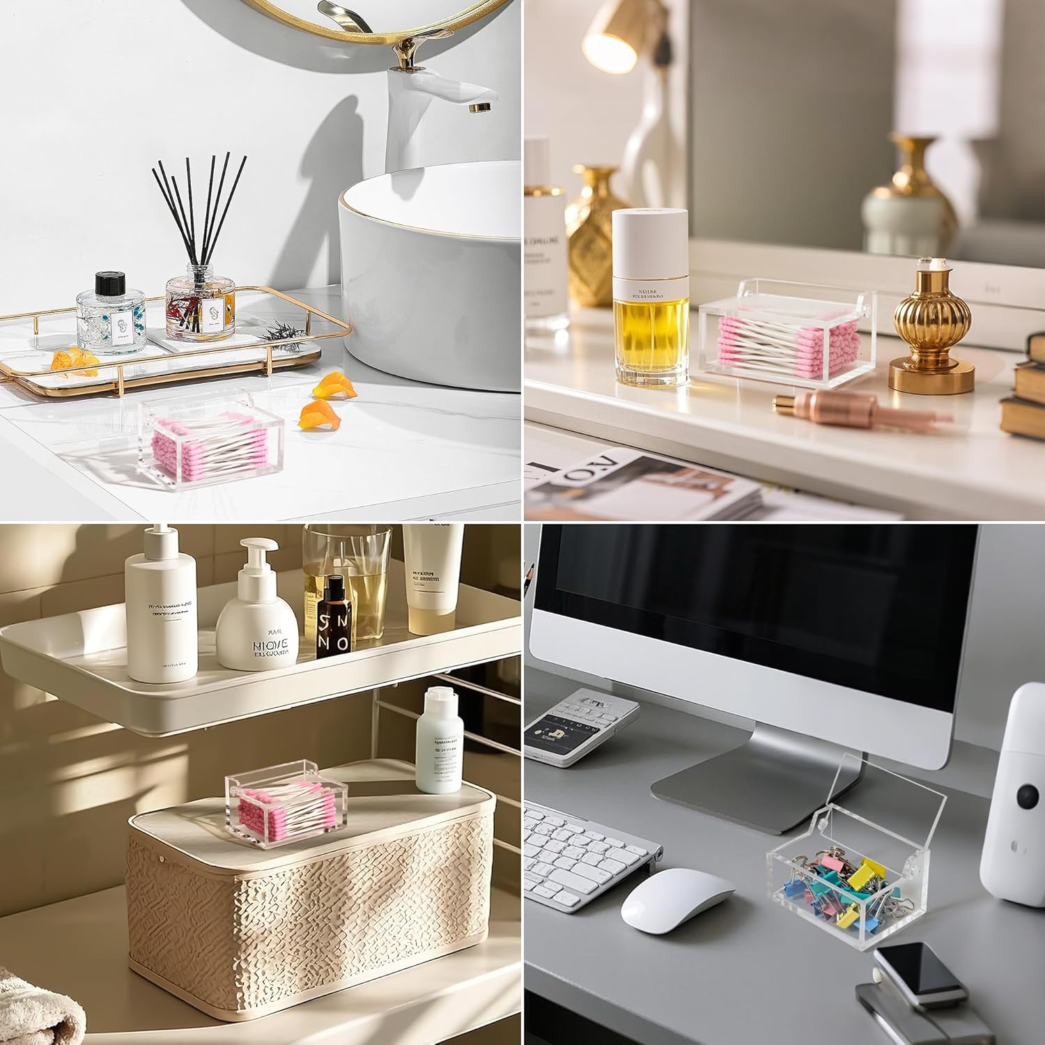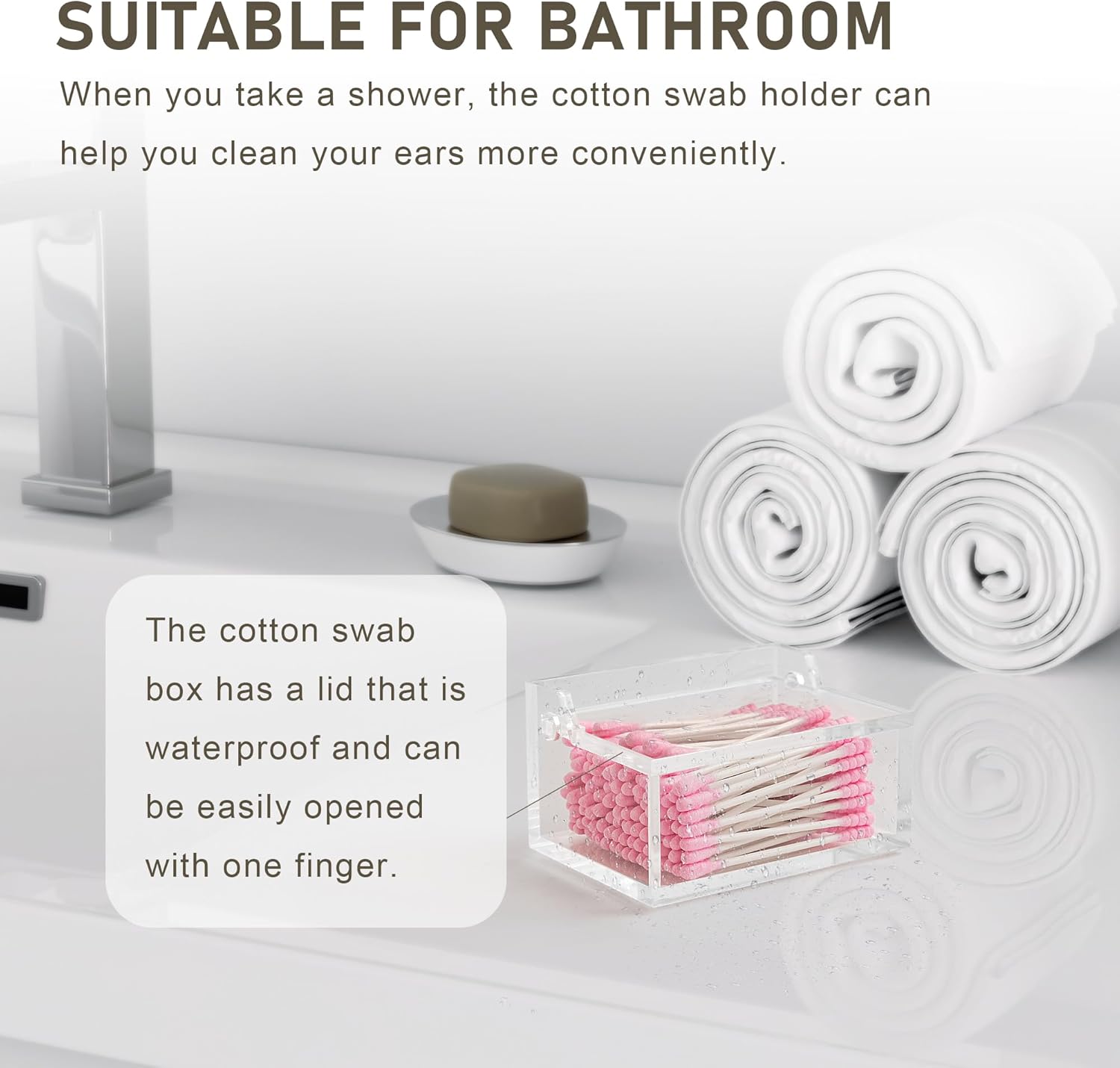 - [Clear Holder with Lid]: This cotton Rectangle and qtip holder feature a dustproof lid to keep the items neat and clean. Clear material,not only can be added in time.But also easy to clean and need only be wiped with a damp cloth occasionally