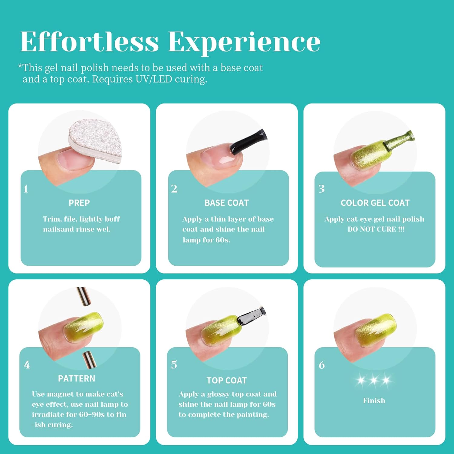 - Achieve stunning nails with TUTUYU's Light Blue Cat Eye Gel Nail Polish, which features a captivating cat eye effect that adds depth and allure to your manicure.