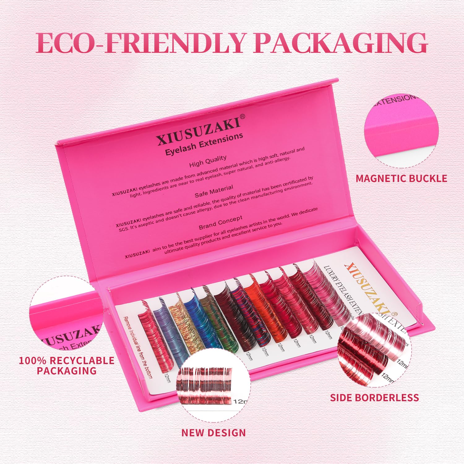 - Easy To Use: The colored lash extensions are easy to pick up from the strips with no residue, no kink. Easy to make fans and easy to apply.