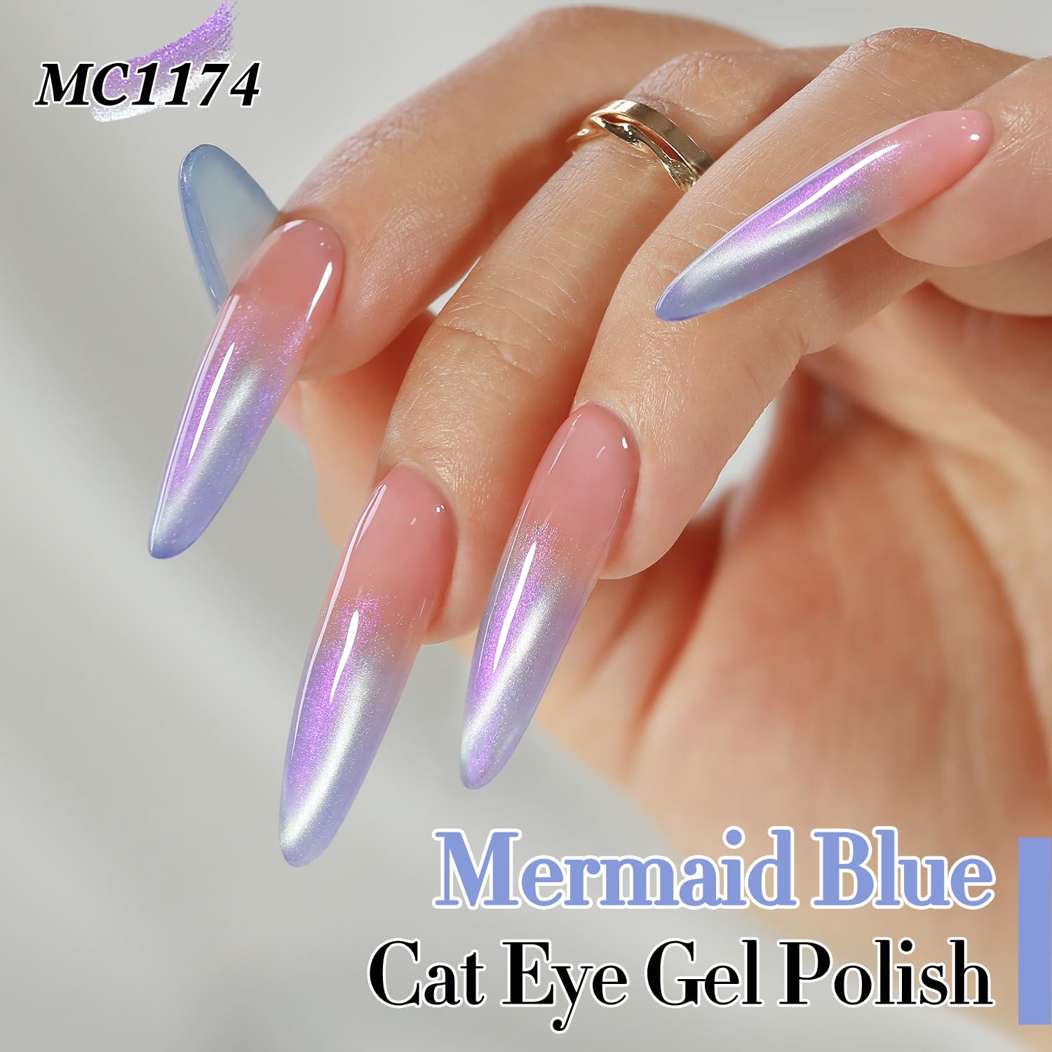 Double Rhythm 0.5 Oz Cat Eye Gel Polish with Magnet Same Color Same Bottle Holographic Glitter Shimmer Translucent Color Salon 15 ML Magnetic Nail Art (Mermaid Blue-MC1174)