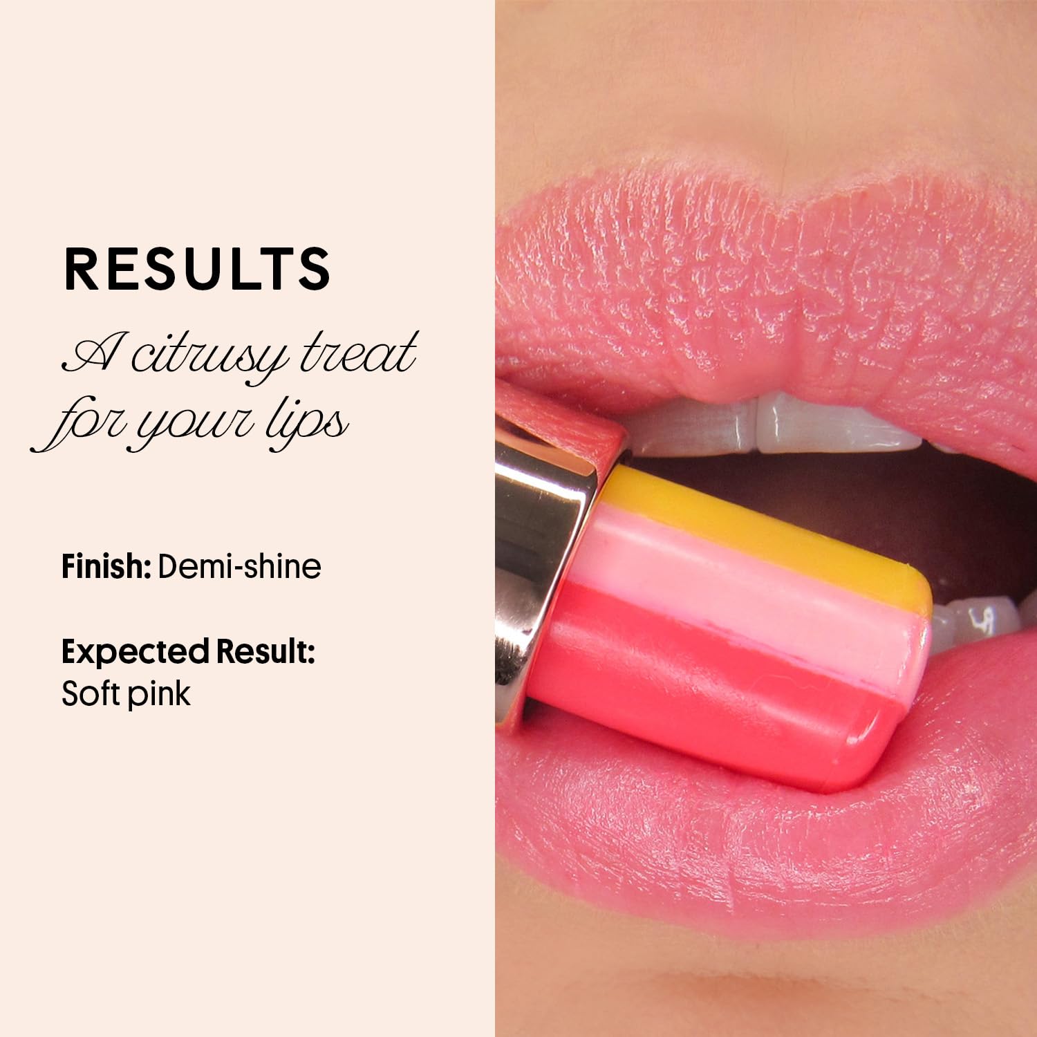 Winky Lux Pink Lemonade Tri-Color Tinted Lip Balm – Lip Care with Jojoba Oil & Vitamin E, Sheer Tint, Juicy Citrus Scent, Softens and Hydrates Dry Lips