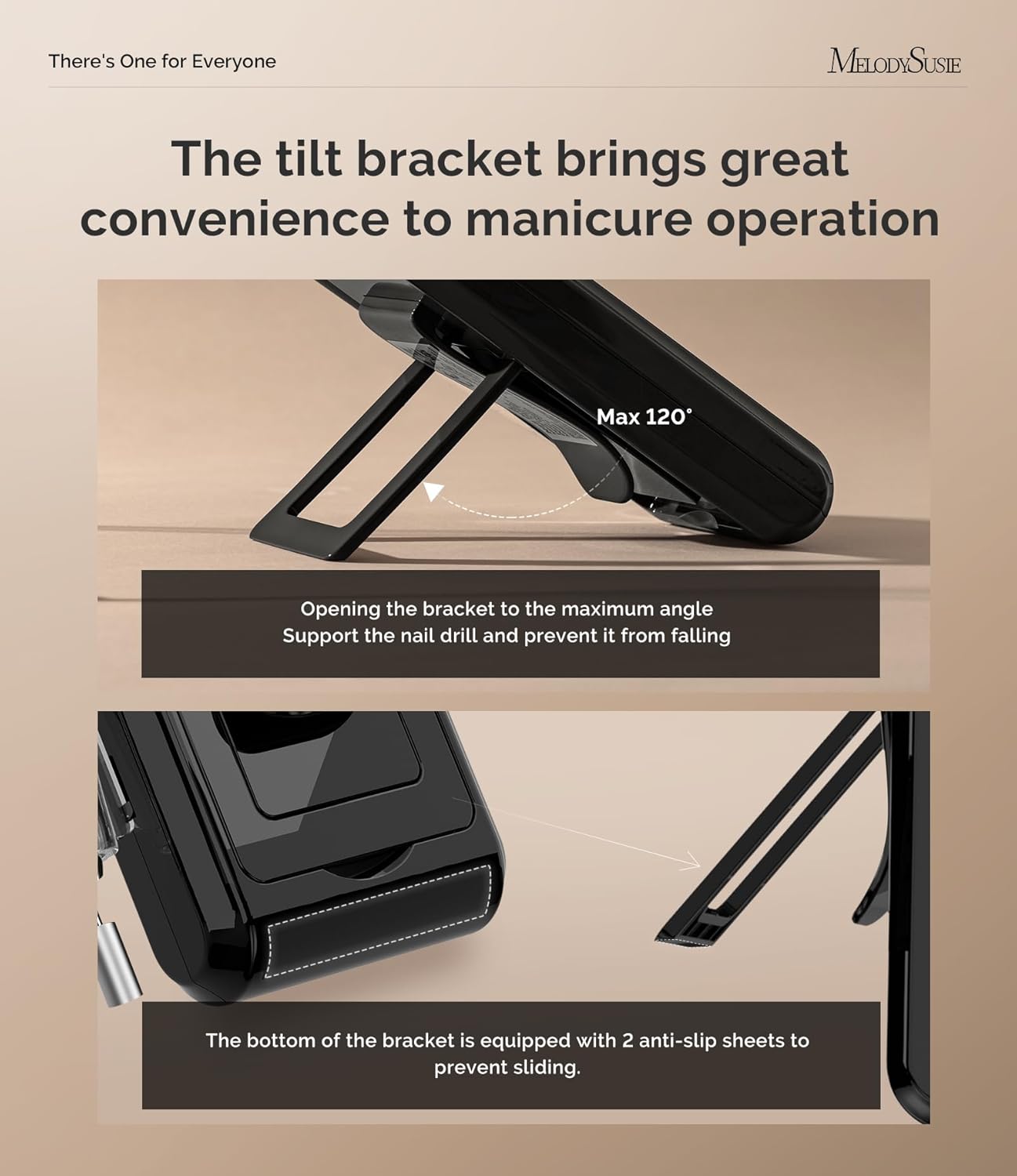 MelodySusie Professional 2 in 1 Nail Drill Kit 40,000 RPM, MB420G Brushless Portable Cordless Rechargeable Electric Nail File, Efile Nail Drill Machine for Acrylic Gel Nails Polishing Removing, Black