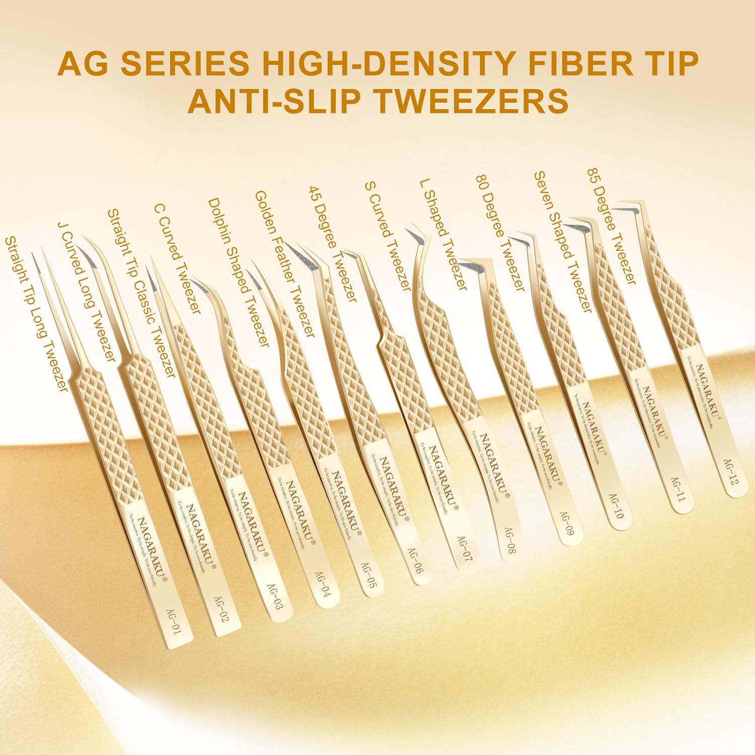- 85 Degree Long Tip Tweezer AG-12: Color: Gold / 4.45 inches; Width: 0.39 inches. These handcrafted tweezers are made of high-strength stainless steel, which is resistant to most acids and other corrosive agents. We give each tweezer a box to protect the tweezers