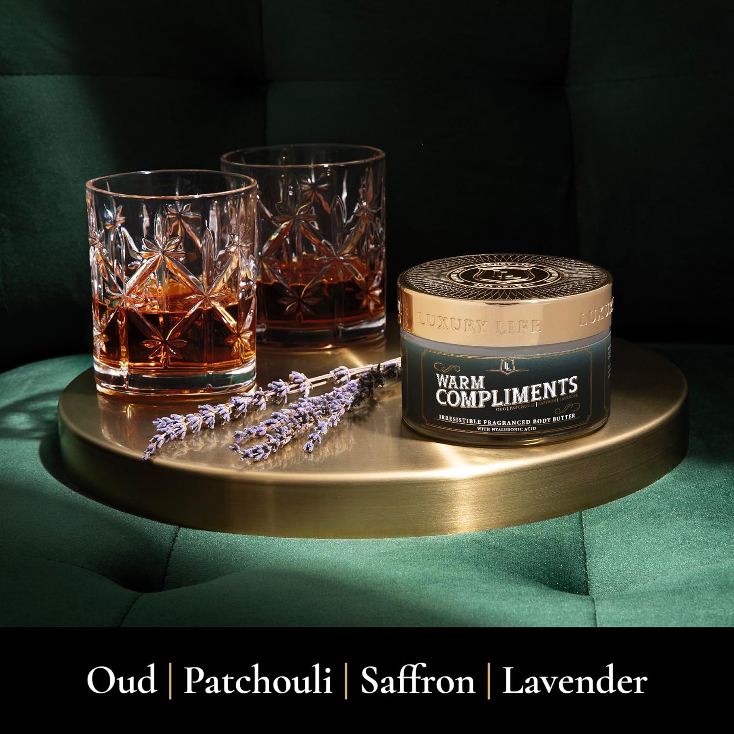 LUXURY LIFE BUTTER - Irresistibly Scented Body Butter with Hyaluronic Acid for Ultimate Moisture. Hydrates for a Non-Greasy Glamorous Glow (Presidential, Peach Smoke, Warm Compliments 5 oz)