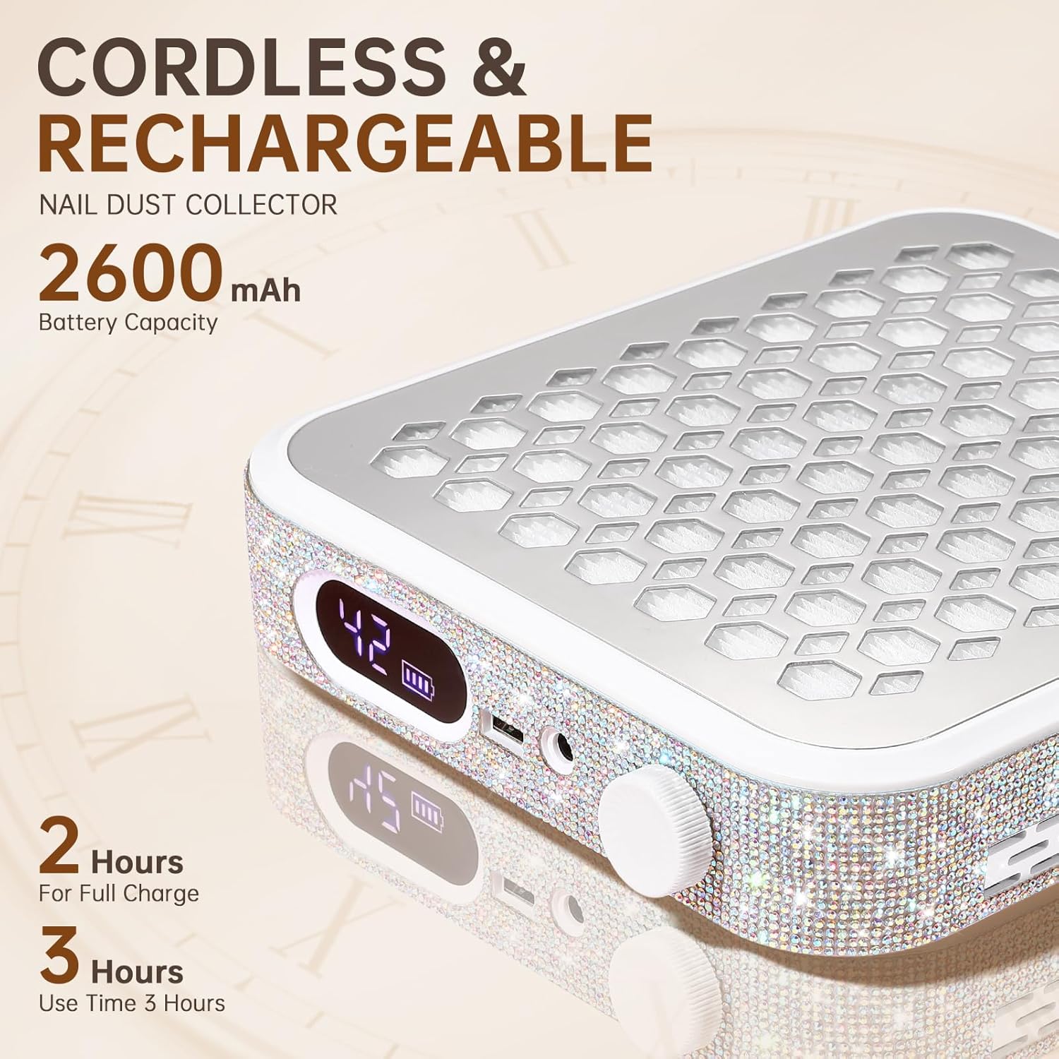 - 【Rechargeable Dust Collector】: This CHRISTINE SHELLY cordless nail dust collector offers intense suction that captures even the finest dust particles, promoting a cleaner workspace and reducing inhalation risks during manicures. Giving you and your customer a breathing environment while filing or polishing nails. It is very convenient to use wireless anytime and anywhere. The best choice for your nail art