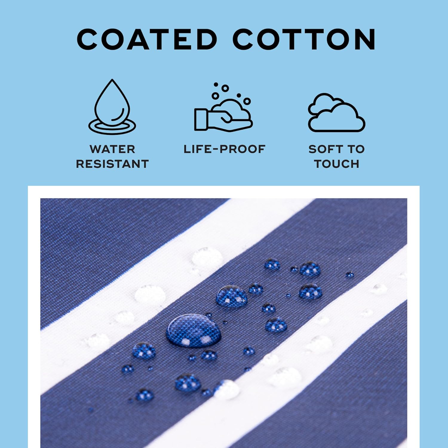 - No-Worry Coated Cotton Wipes Clean Easily: Made of 100% cotton twill that's heat-laminated with a water-resistant coating, this lightweight, super-durable fabric resists dirt, stains, and moisture. Spills and smudges? Just wipe clean!
