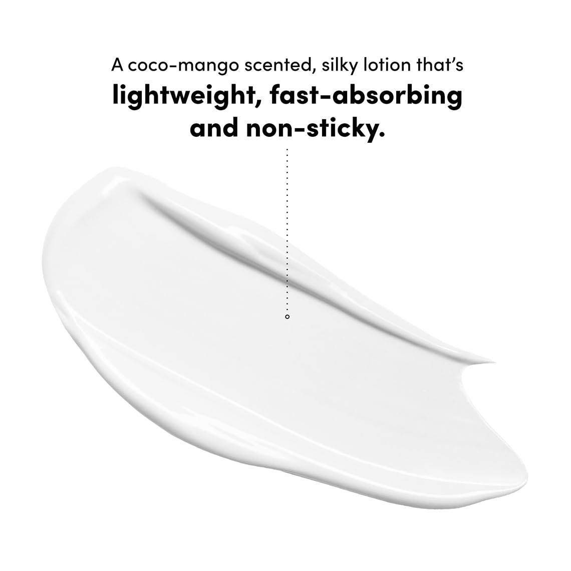- A COCOMANGO SCENTED SILKY LOTION Easily builds to your custom shade of sun-kissed tan, thanks to skin-loving hyaluronic acid and antioxidant-enriched DHA. Our most customisable formula for your body, putting you in control of your desired shade.