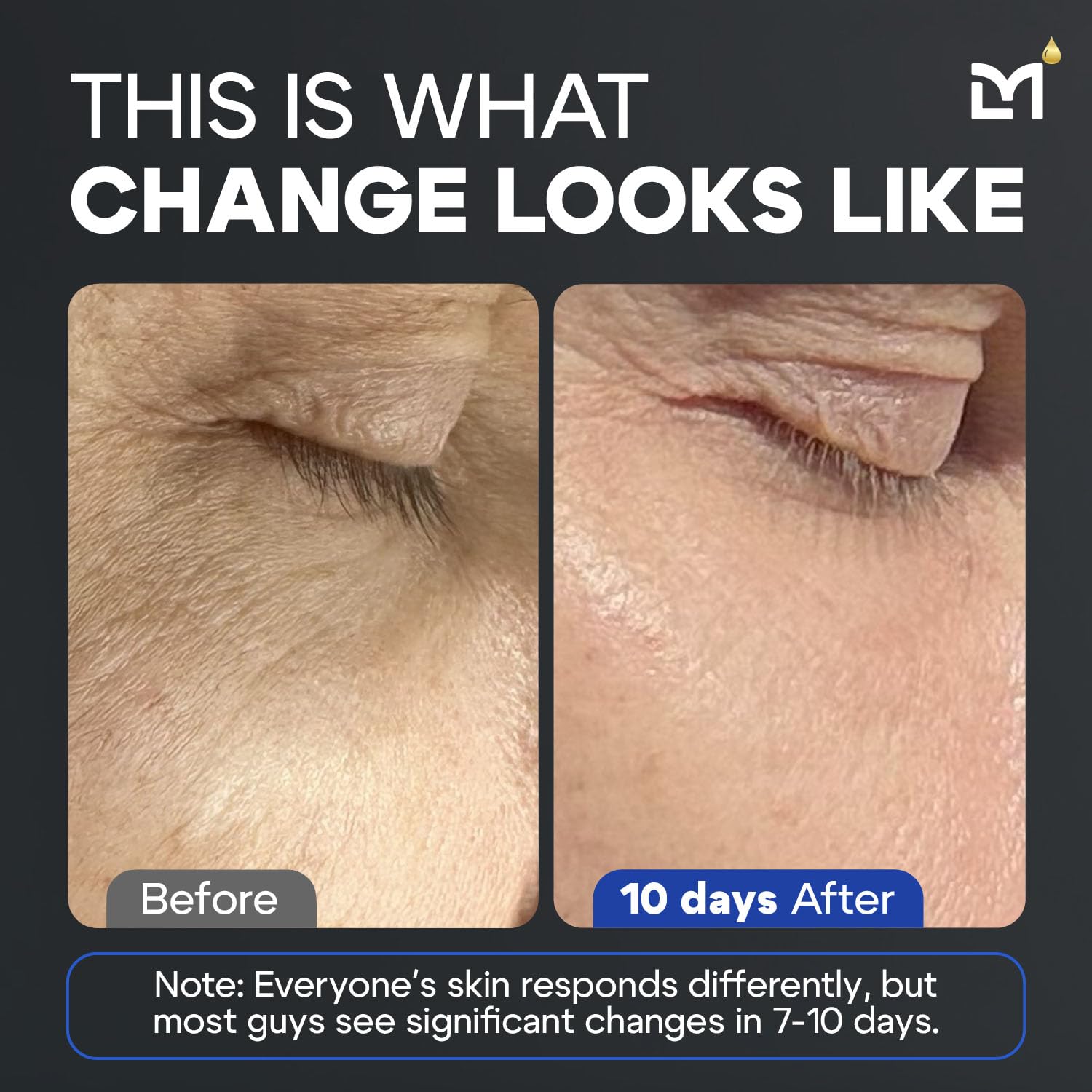 - You'll Notice a Difference Within Days: After 7-10 days with this peptide anti-aging serum, many guys see improvements in skin firmness and texture, with stubborn lines starting to soften around the eyes and forehead; Keep in mind that anti-aging for men's skin care results can vary based on your age, skin, and lifestyle