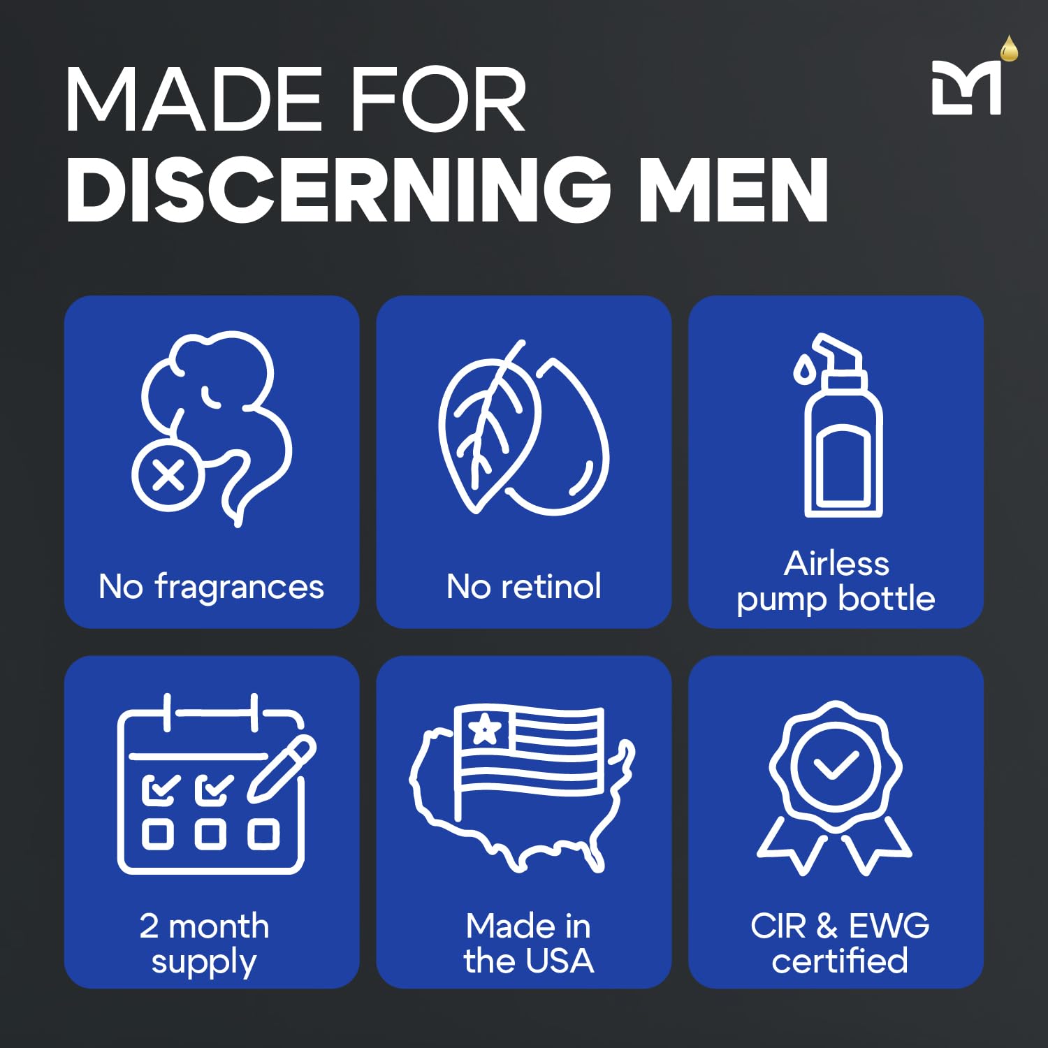 - Higher Standards in Anti-Aging Skincare for Men: All of our anti-aging skin care for men formulas are engineered and made right here in the USA; We made sure every men's peptide serum ingredient passes the highest safety standards from both CIR and EWG – the top authorities in men's skincare safety. No old-style GHK-Cu peptides here.