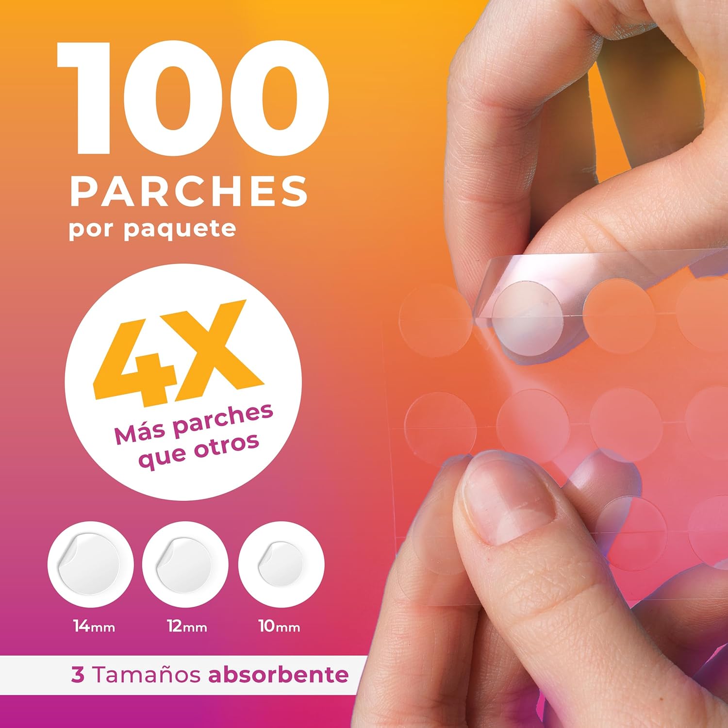 - RESULTADOS EN 6-8 HORAS: Usa estos parches durante el día o la noche. Limpia y seca el área, aplica el parche, espera de 6 a 8 horas, y retíralo suavemente. Incluye parches pequeños, medianos y grandes.