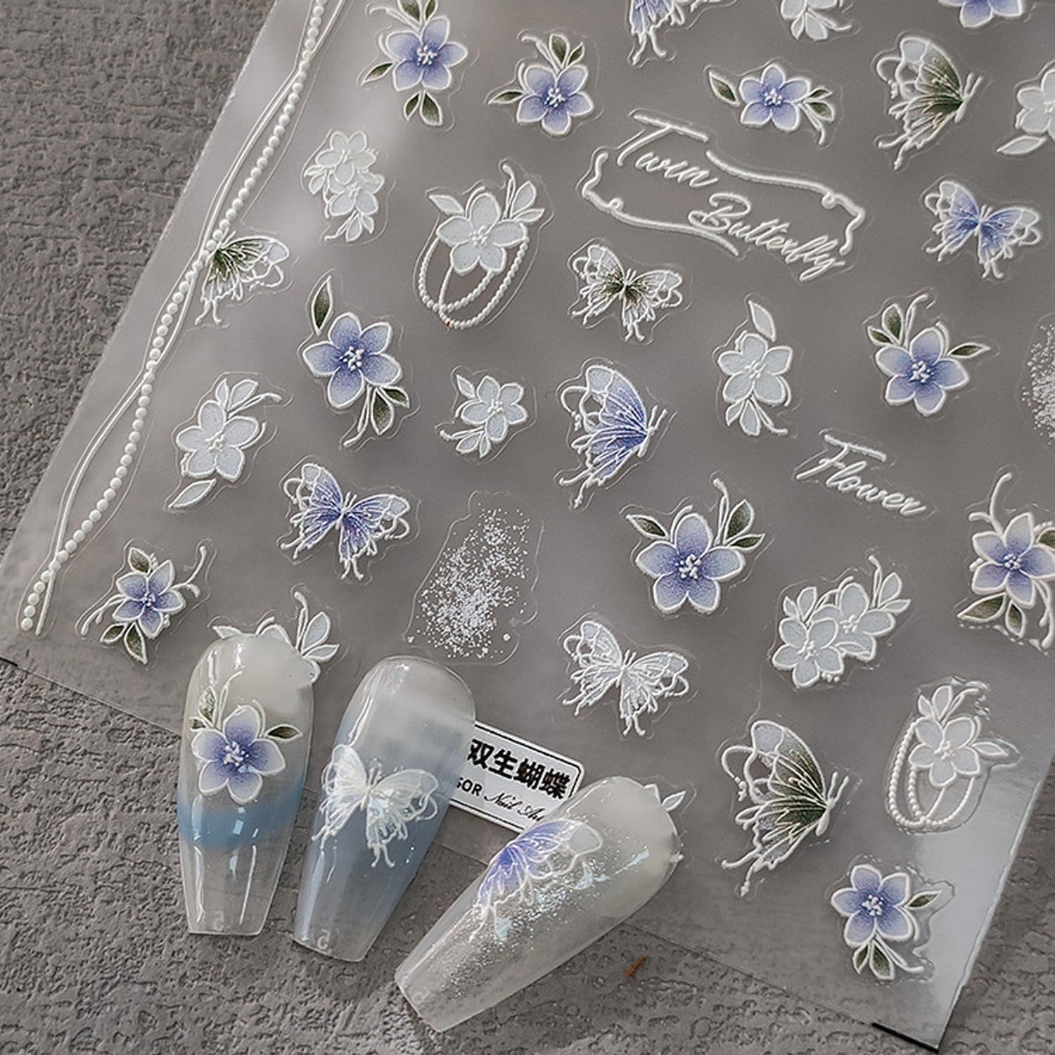 - Attractive Floral Nail Decals: 1 sheets of 5D embossing flower nail stickers, give you an advanced exquisite feeling. Floral butterfly elements nail decals, cute and beautiful carving patterns designs, suitable for your spring summer nail decorations
