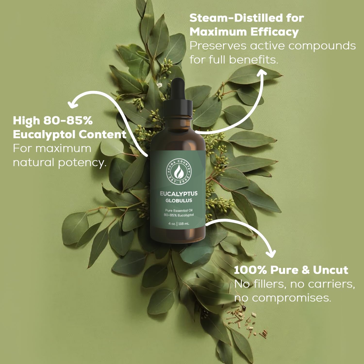 - 100% PURE & ORGANIC EUCALYPTUS OIL – Aroma Country Eucalyptus Globulus Essential Oil is 100% natural, organic, and undiluted—no fillers or additives. Steam-distilled for maximum potency and therapeutic benefits.
