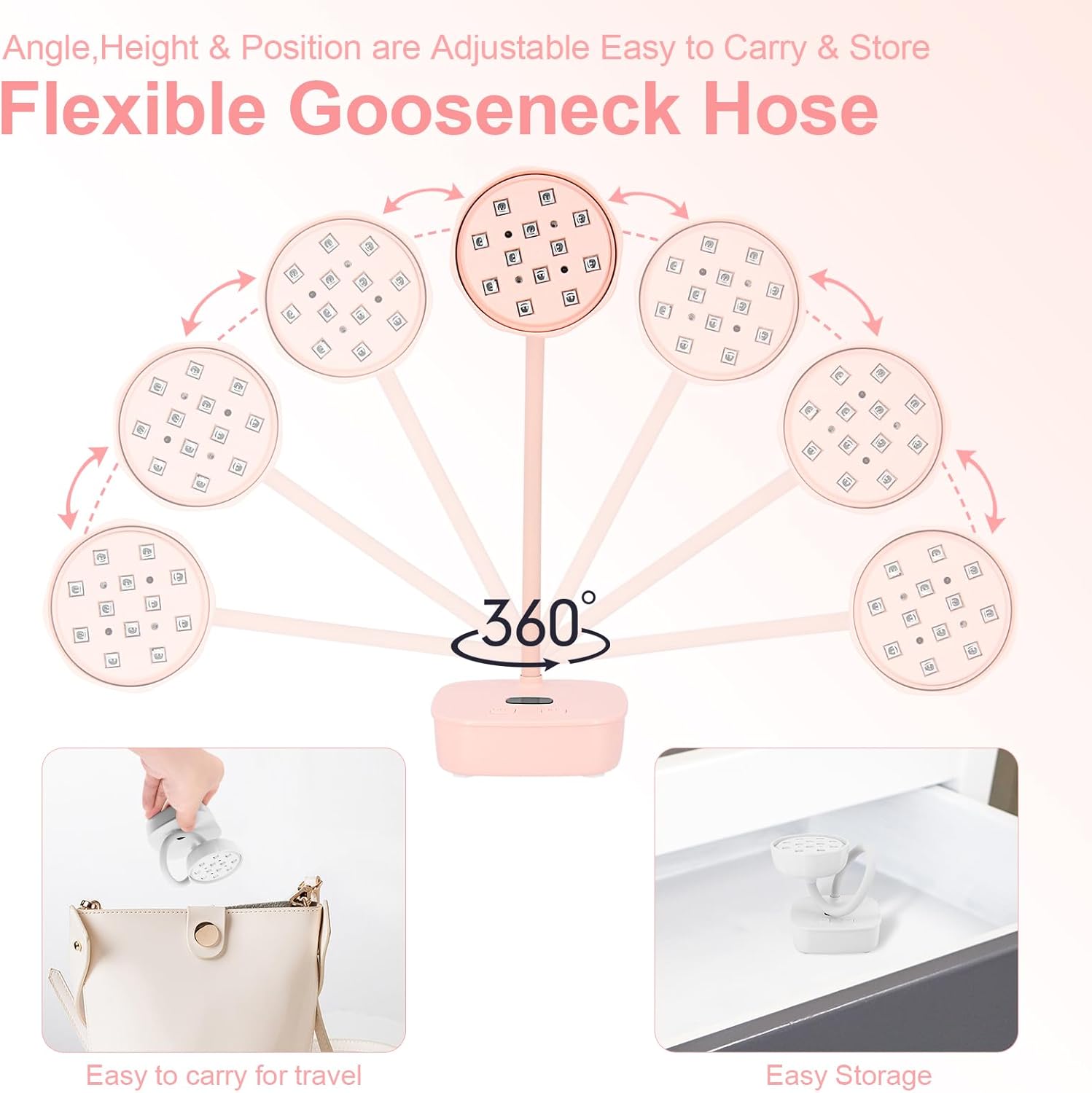 - Flexible Gooseneck:UV nail lamp features 360°adjustable and bendable gooseneck,which can flexibly adjust the height and direction of the UV lamp,stabilize various shapes,and let the light focus exactly where you need it without side light.