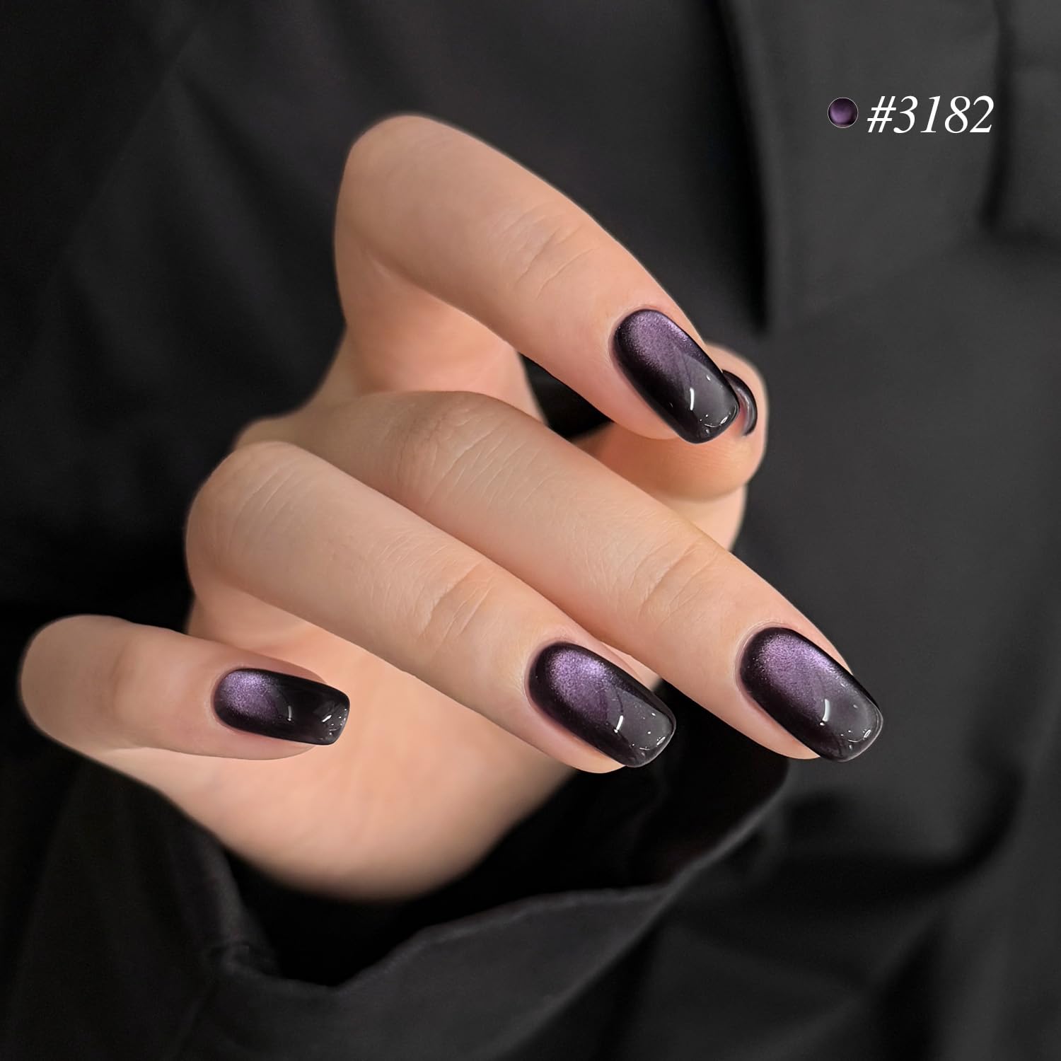 GAOY Purple Cat Eye Gel Polish Set, 6 Cosmic Violet Shades with Magnetic Glitter Effec, Galactic Glitter Gel for Mystic Nail Art