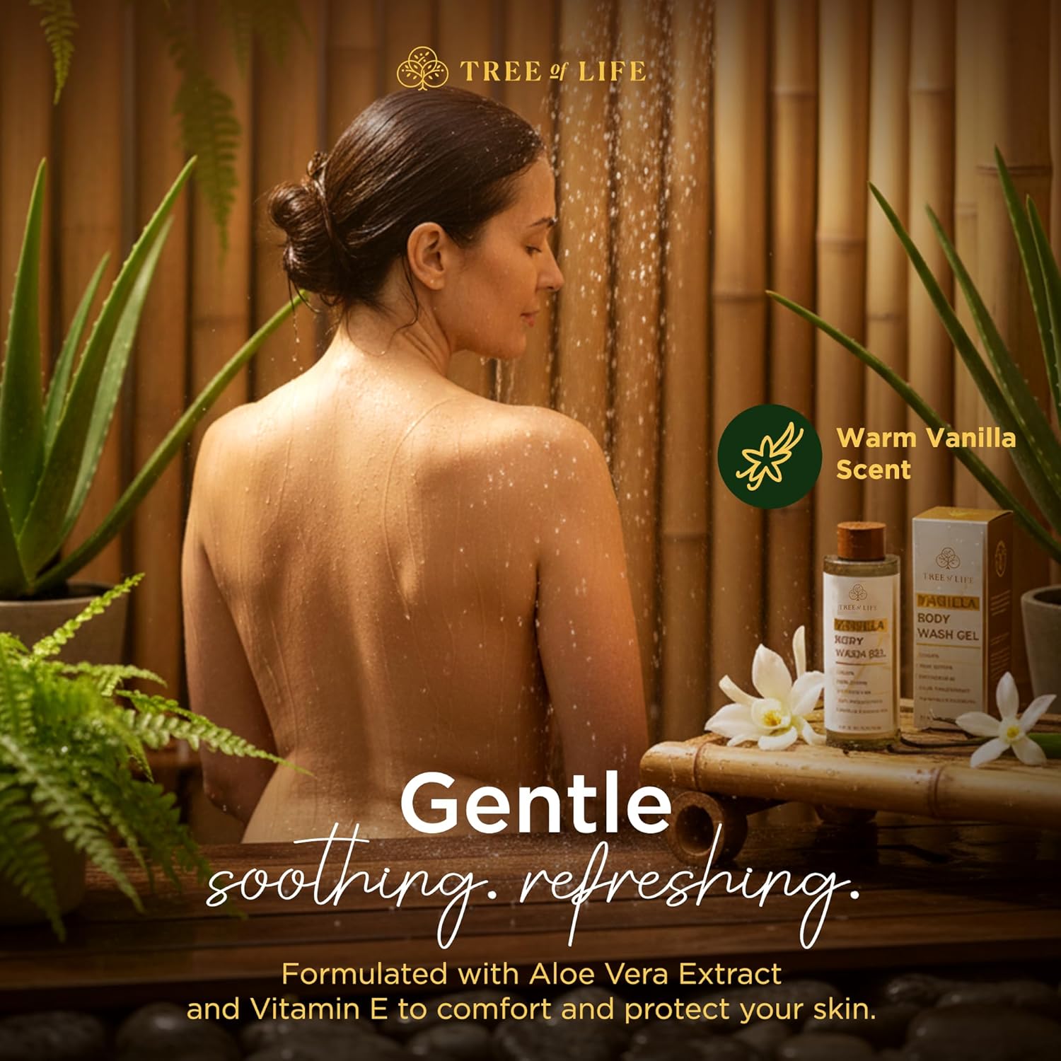Tree of Life Vanilla Body Wash Gel - Moisturizing Shower Gel with Jojoba Oil and Shea Butter Hydrating Body Wash for Sensitive Skin and All Skin Types, 16.9 fl oz