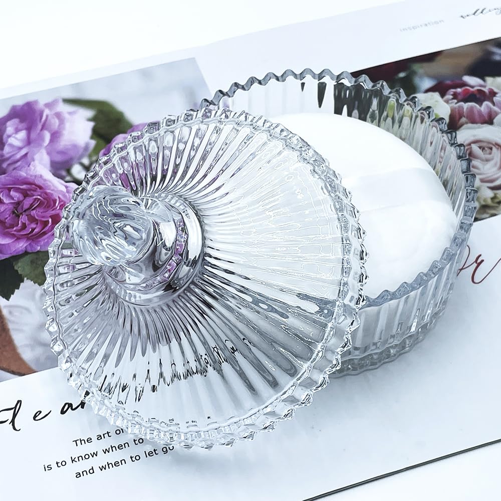 - Decorative Glass Powder Jar:The powder puff jar is made of high-quality glass, which is thick and sturdy. The design is elegant and luxurious for long-lasting beauty, making a instant décor upgrade for your dressing table, bathroom,nurseries, or vintage-themed rooms.