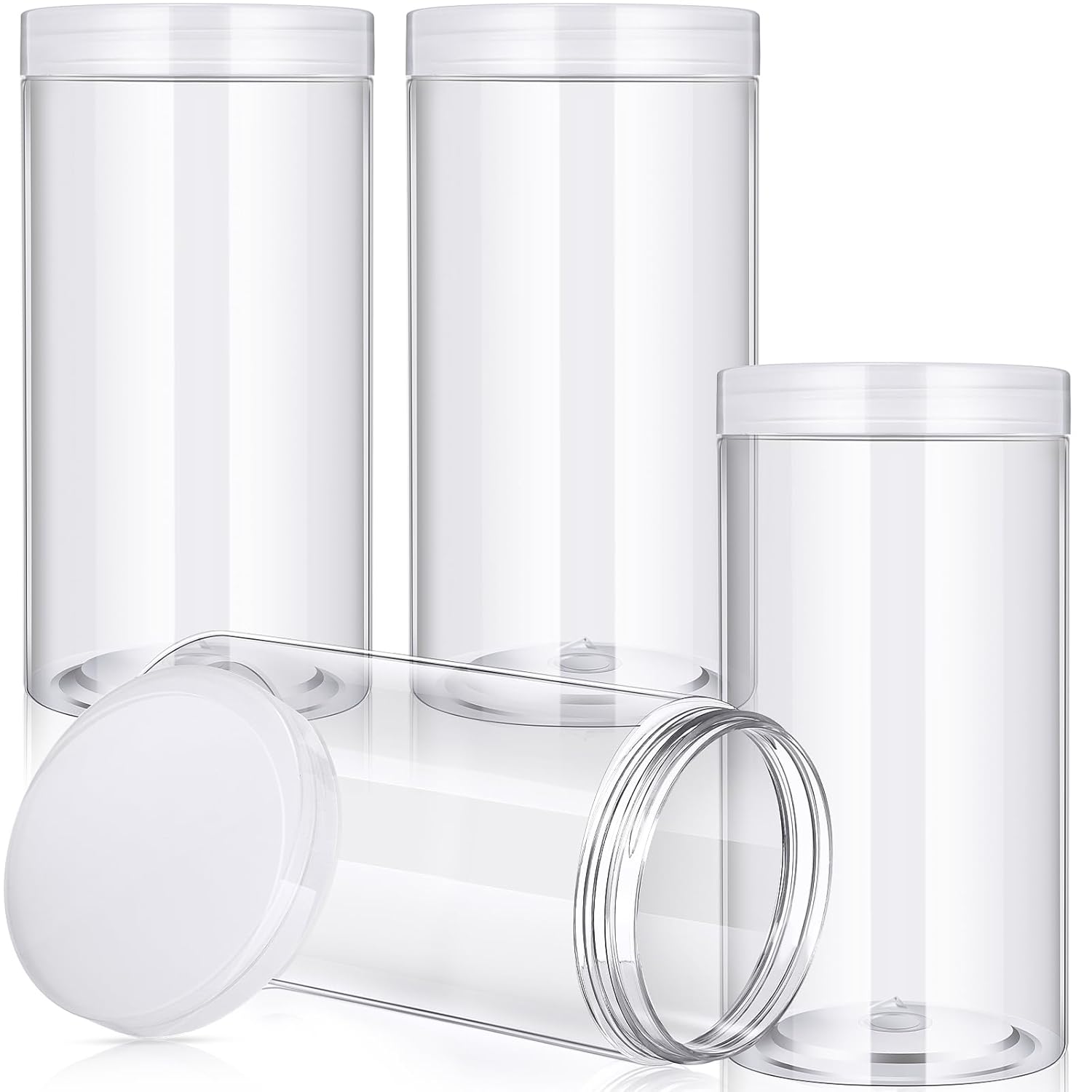 - What You Receive: there are 4 pieces plastic jars with black screw-on lids; They are durable and refillable, measuring about 32 oz in capacity